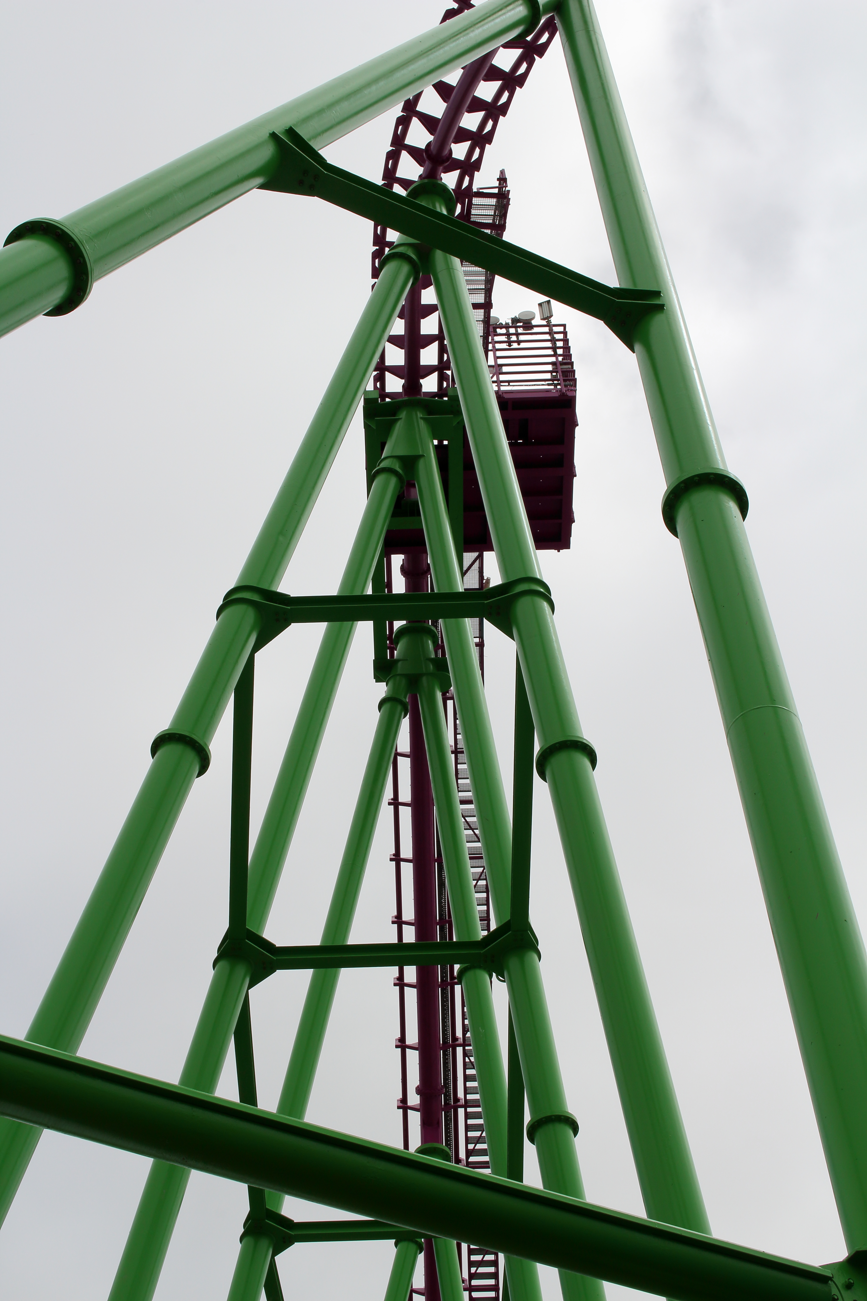 Mit freiem Blick nach unten. Mit jedem Höhenmeter mehr wirkt alles andere hier so mickrig, auch der zweite Looping der Millennium direkt unter den Füßen.