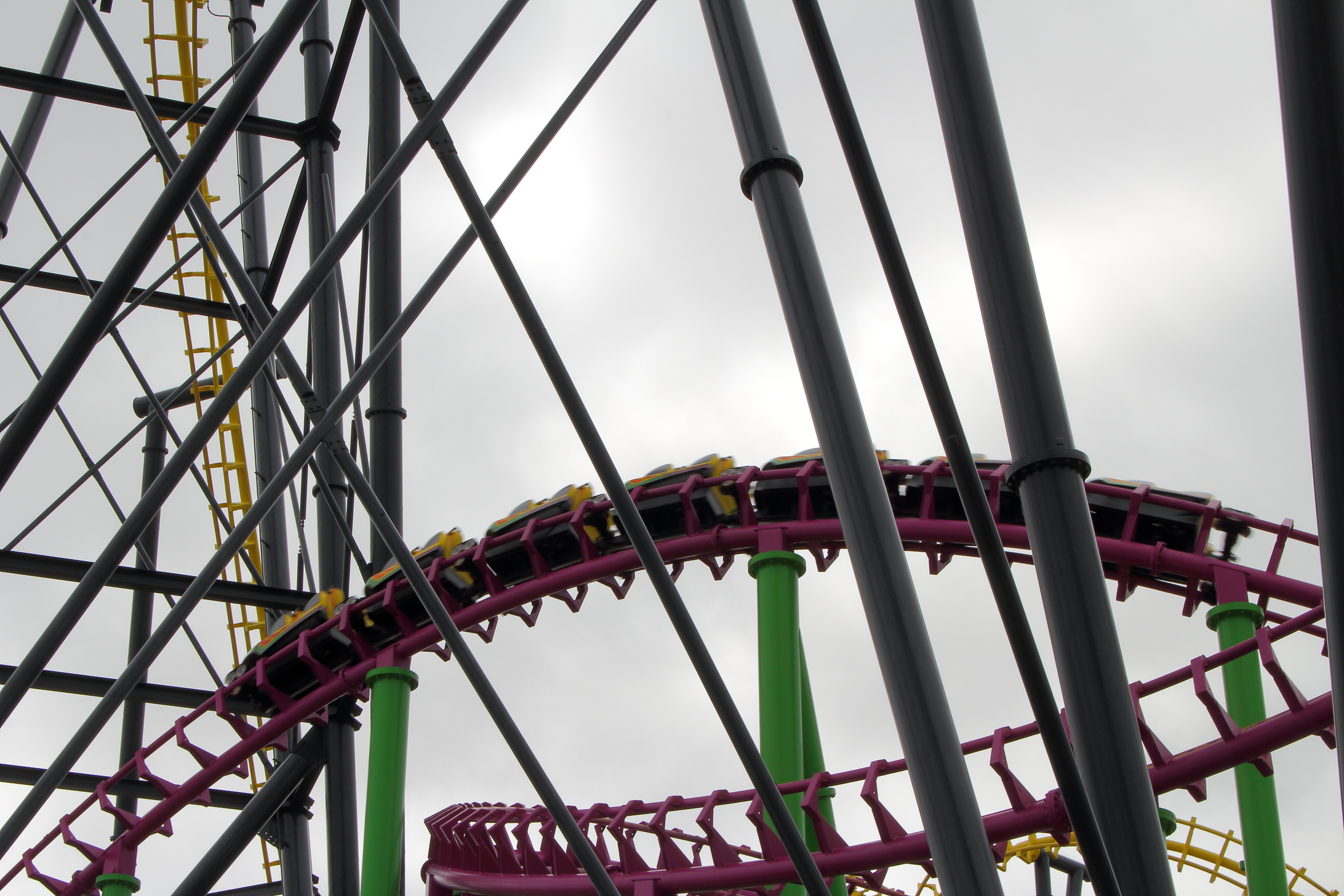Daran schließt sich dann dieses riesige Stahlknäuel an. Nun befahren wird die riesige Cobra-Rolle im Hintergrund.