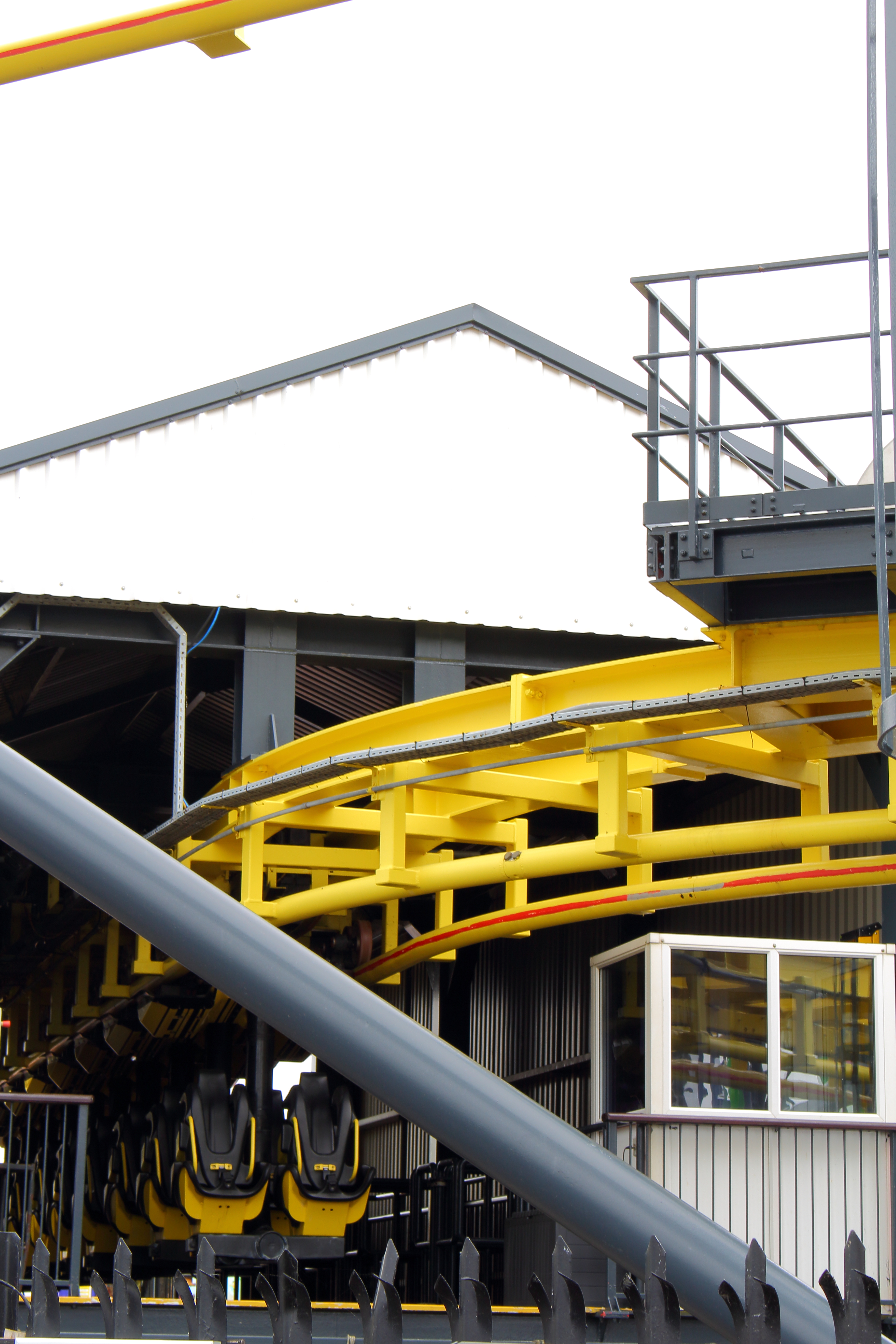 Gleichzeitig ist dies auch der Ausgang der Bahn. Am weißen Schild mussten wir dann auf den Ride-Op warten, der dann die Wristbands kontrollierte und ins in die eigentliche Station ließ.