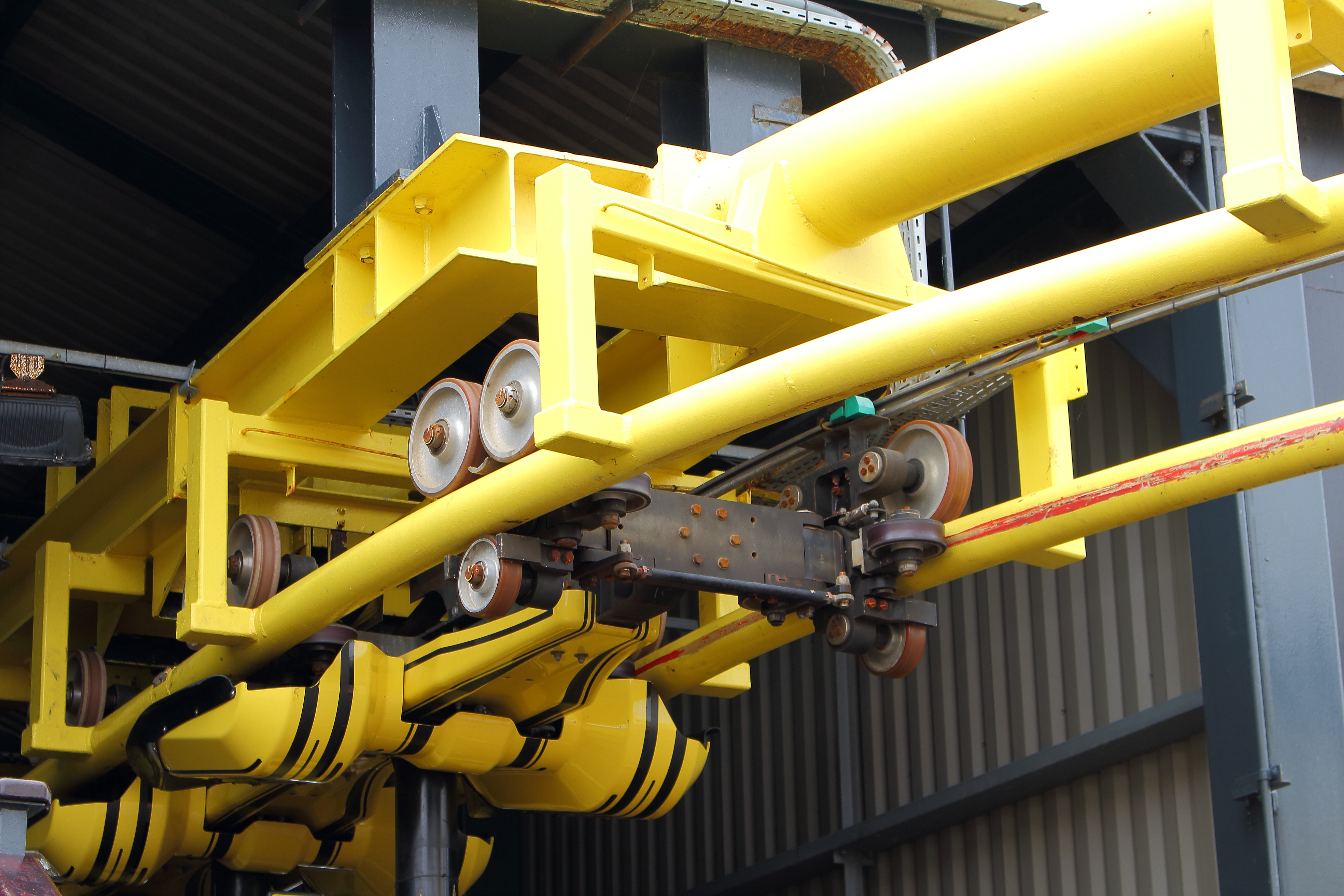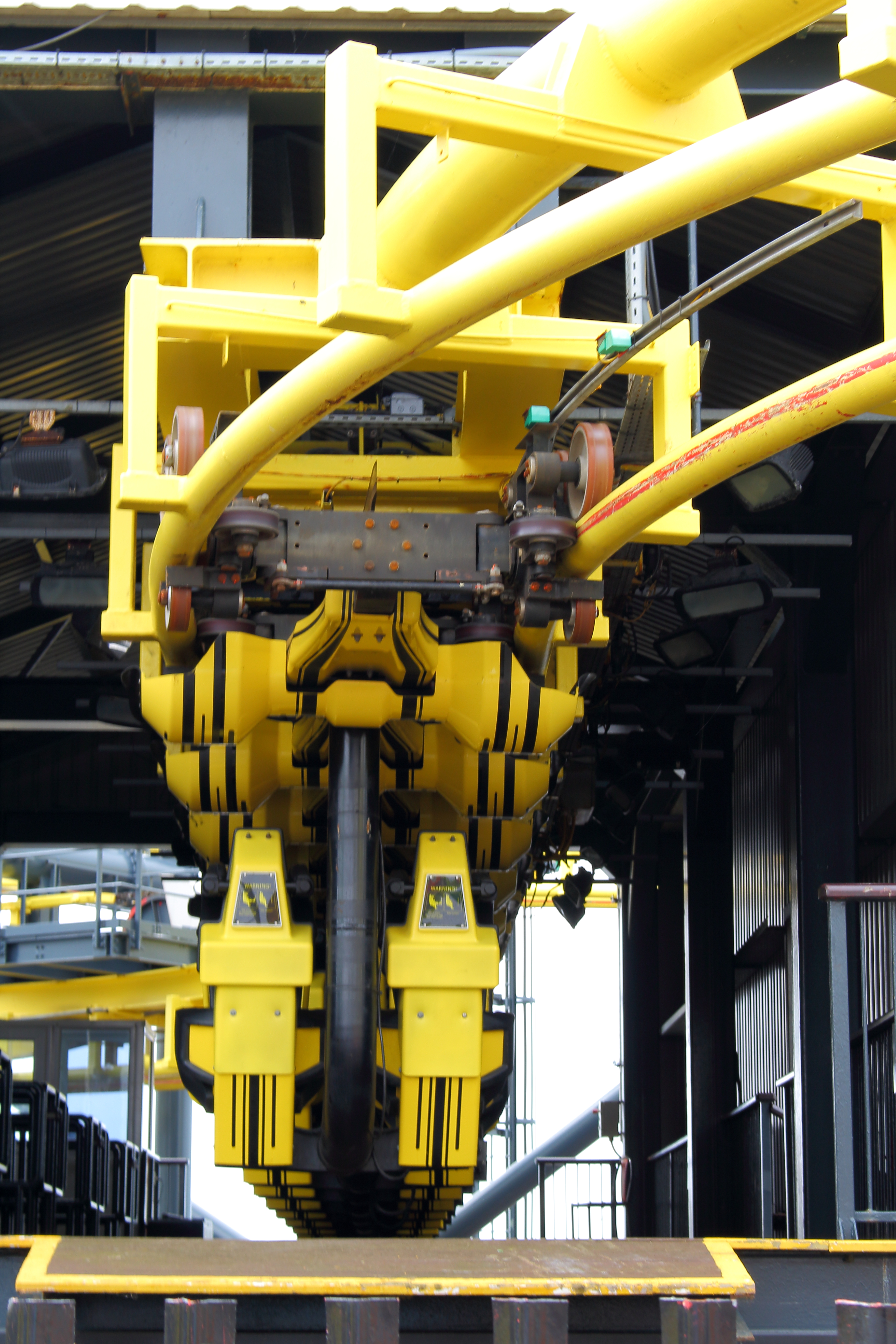 Ein verruchter Blick unter das hübsche Vekoma-Kleid. Auch wenn es ein schöner Anblick ist, das ein oder andere Km/h'chen mehr Liftspeed wäre nicht so schlecht.
