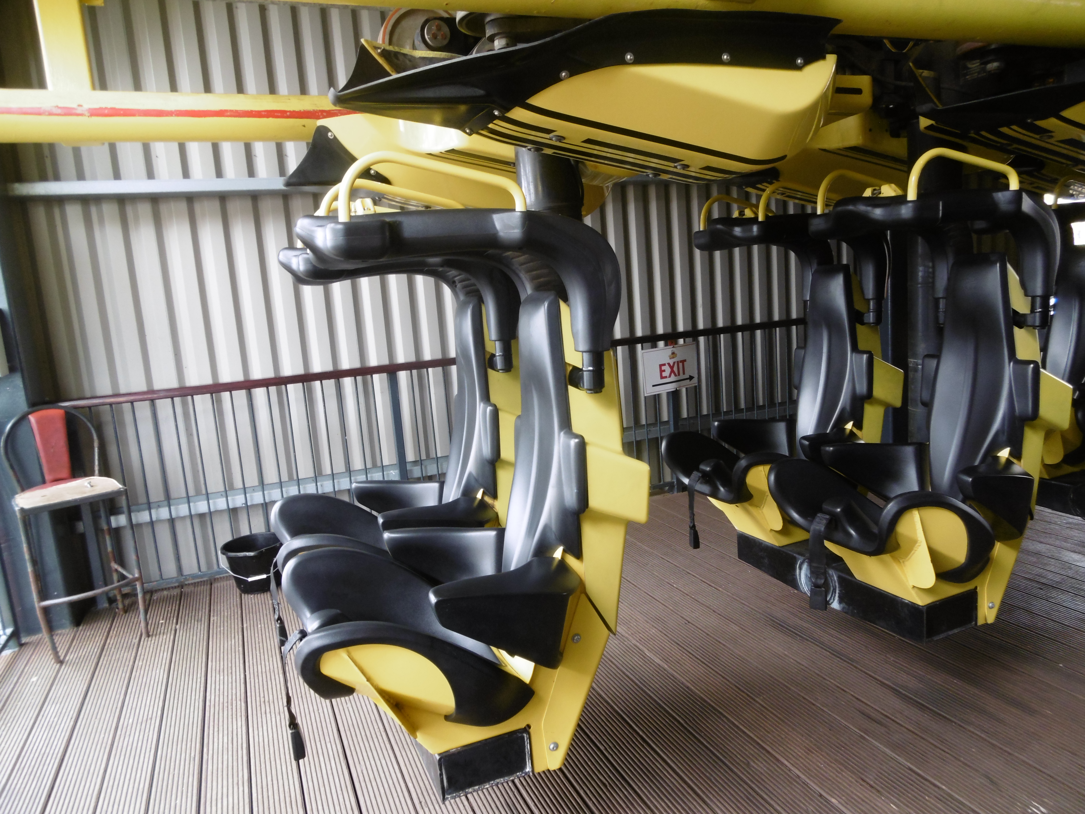 Bei meiner einzigen Möglichkeit war es dabei eine lustige Angelegenheit dabei den gefahrenen Gästen in die Augen zu schauen und die Emotionen zu sehen. Den meisten war die Angst noch ins Gesicht geschrieben. Die Bahn ist mit ihrer Höhe, den Fahrelementen, der Lackierung und dem fehlenden Boden unter den Füßen aber auch furchteinflößend. Dazu passend ist dies der wohl am sanftesten zu fahrende SLC, insbesondere in der ersten Reihe. Daher habe ich Christian sogar zu einer weiteren Fahrt überredet bekommen, auch wenn wir leider nicht in die erste Reihe gekommen sind. Ihm hätte die Fahrt dort aber sicher auch viel Spaß bereitet. Ich selbst bevorzuge aber durch die schönen Überkopf-Momente eindeutig die letzte Reihe, auch wenn es dort ab und an mal etwas links/rechts ruckelt. Die restliche Stunde bin ich natürlich nicht mehr von dieser Bahn losgekommen, weswegen die restlichen Gruppenmitglieder ohne mich weitergezogen sind. So konnte ich dann auch flott den recht langen Weg vom Ausstieg unter dem Lift hindurch zum Eingang zurücklegen. Die meisten Gäste, die auf die folgende Fahrt warteten, gingen dann meist nach vorne oder in die letzte Reihe, weshalb für mich fast immer zumindest die vorletzte Reihe übrig blieb. Tschakka!