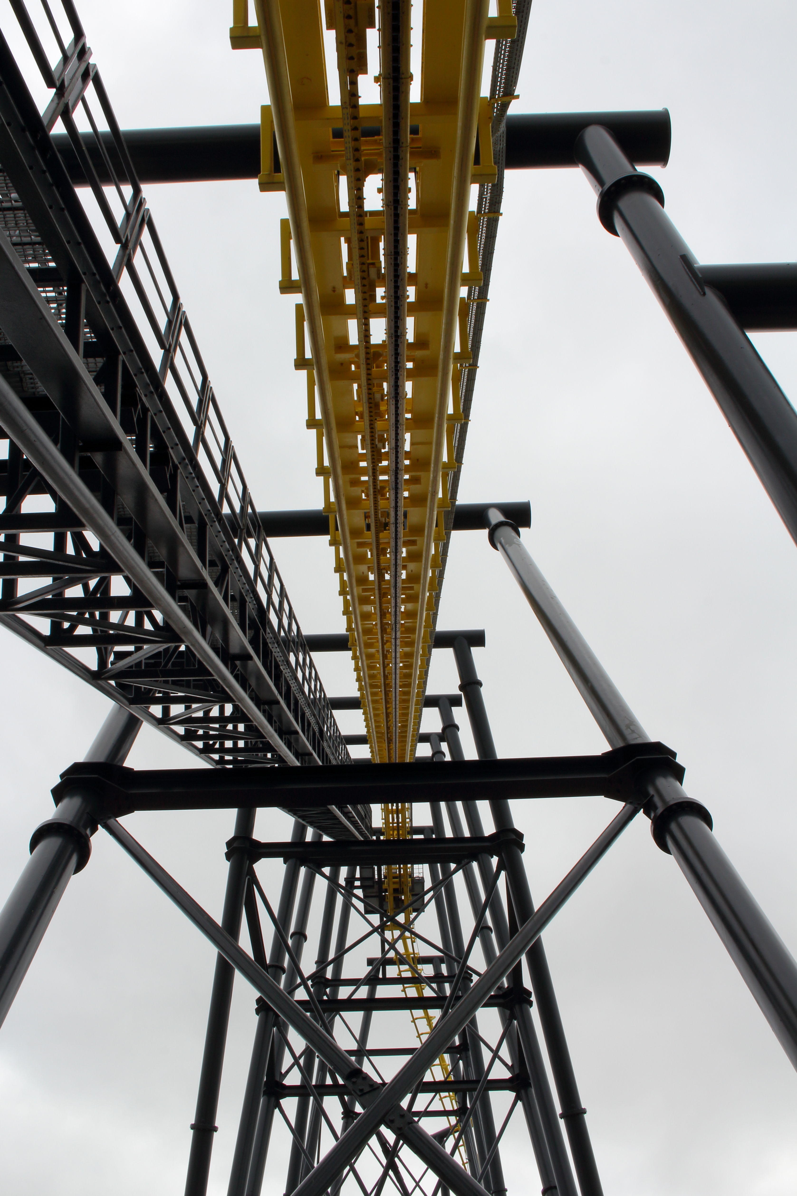 In finalen 51 Meter Höhe gibt es einen tollen Rundblick auf die Region, das Meer und die gelb/schwarze Schönheit vor einem, die einem das Fürchten lehren will.