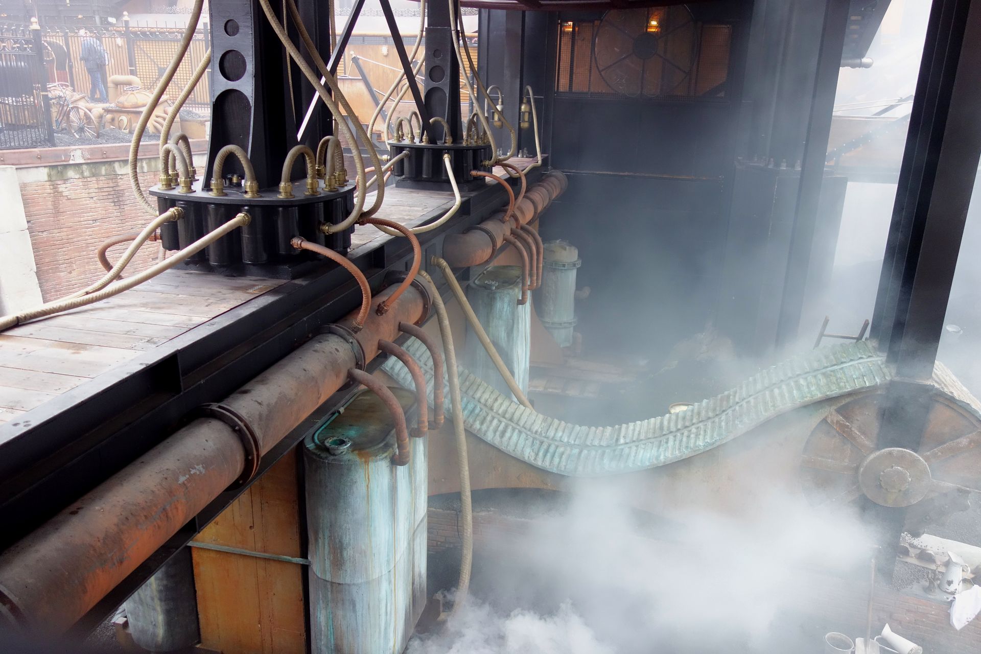 Passend zum Thema Steampunk dampft es zudem an allen Ecken und Enden.
