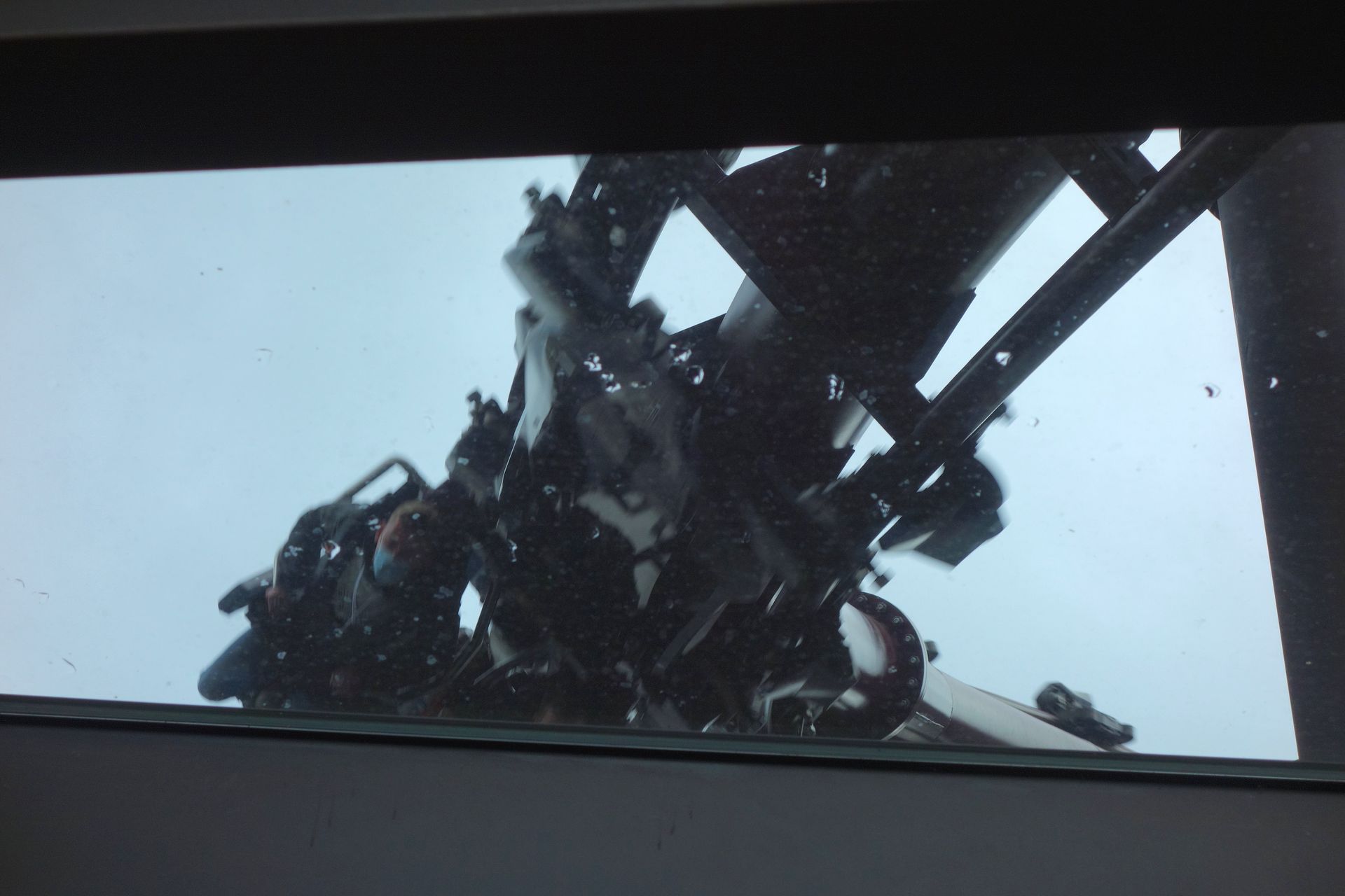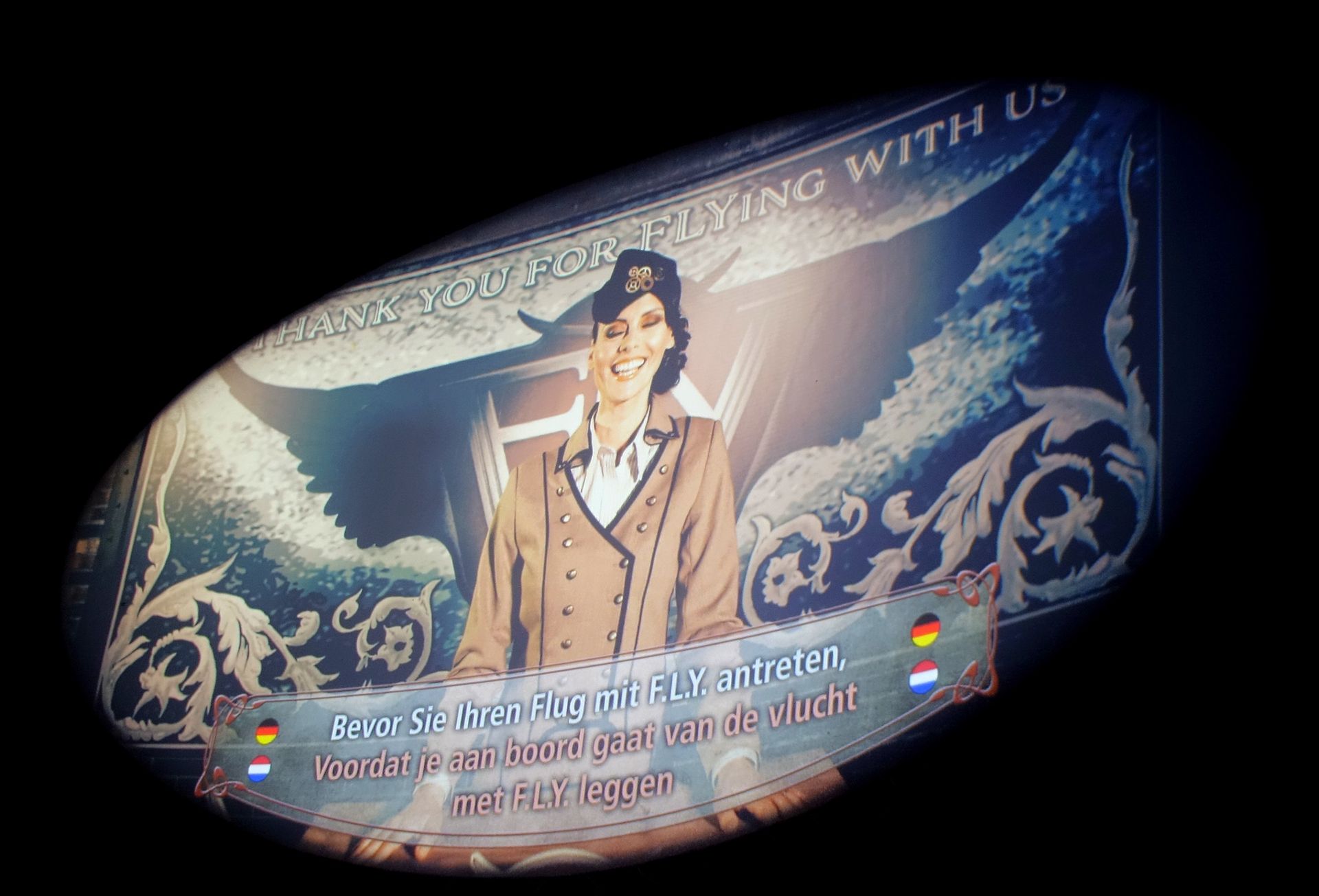 Ist es ein Vogel? Ist es ein Flugzeug? Nein, es ist F.L.Y. durch die Scheiben im Vordach fotografiert.