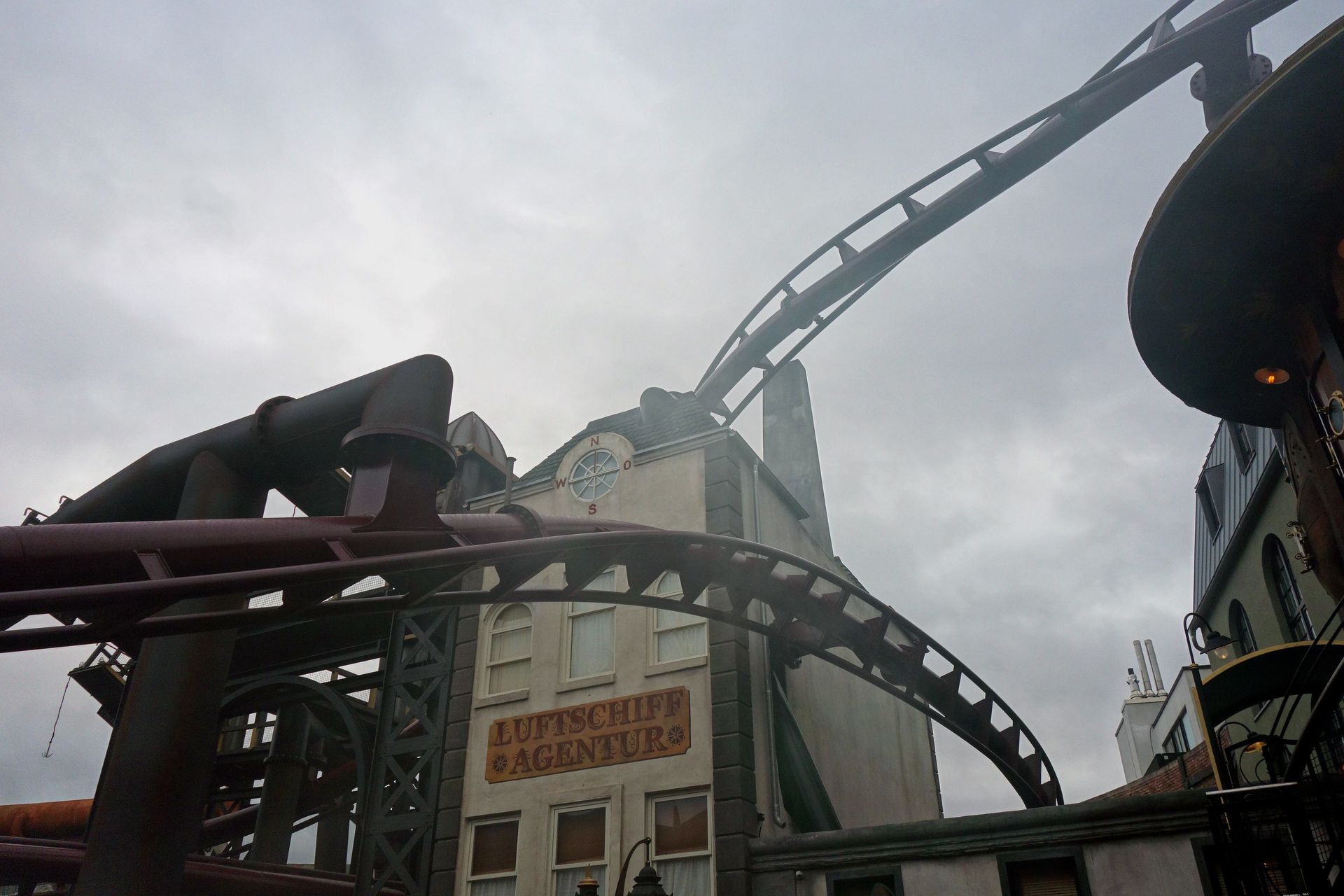 Man landet dann unter dem Zeppelin in der hintersten Ecke, wo sich auch der noch geschlossene Durchgang zum Fantasy-Bereich befindet.