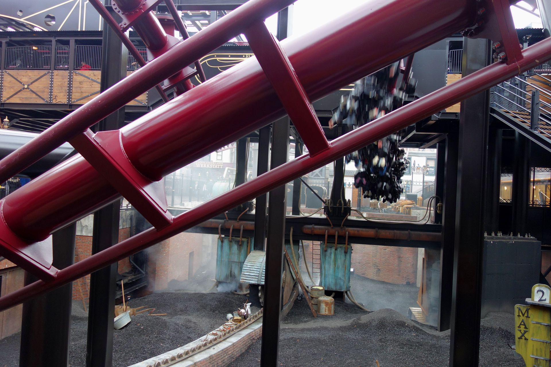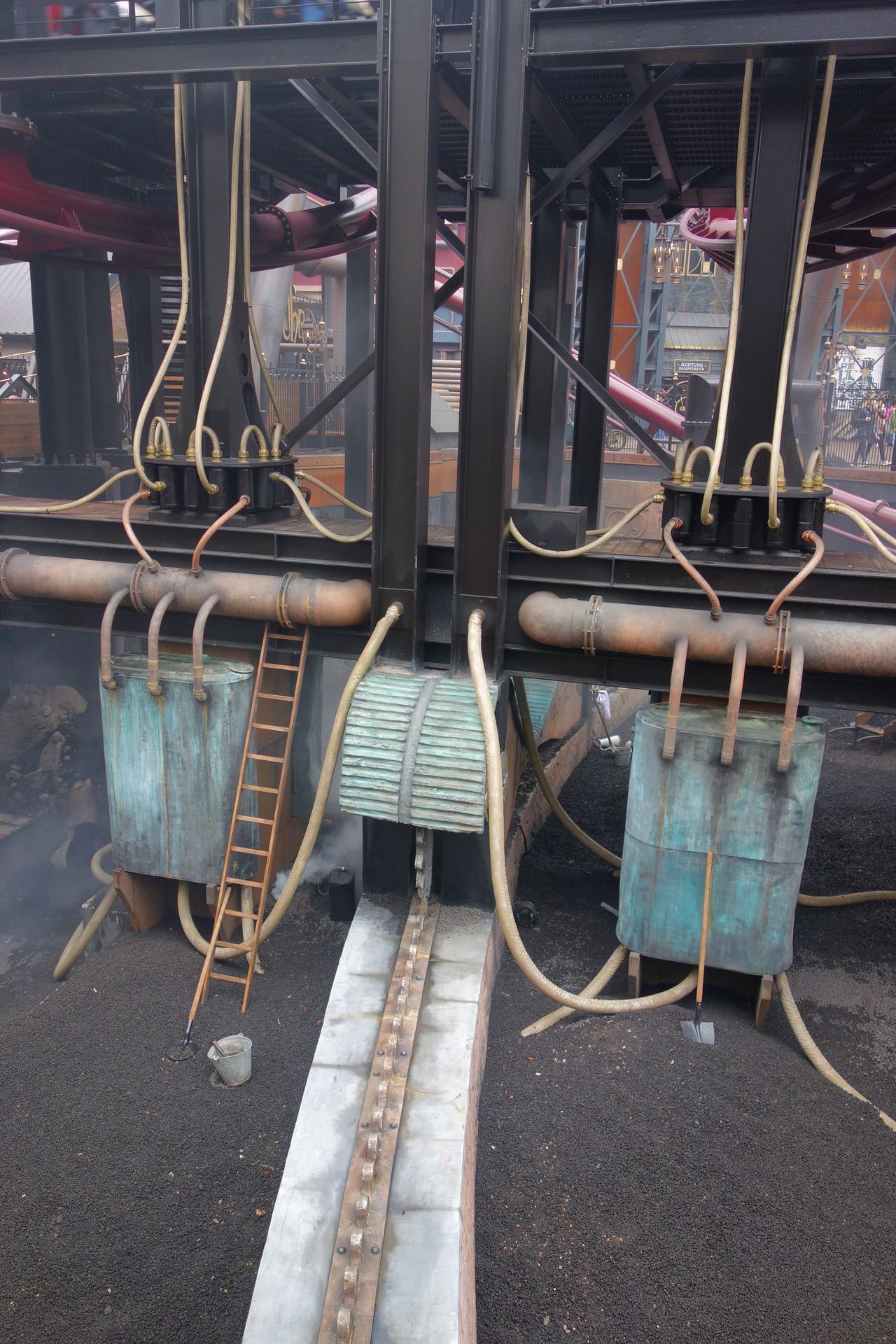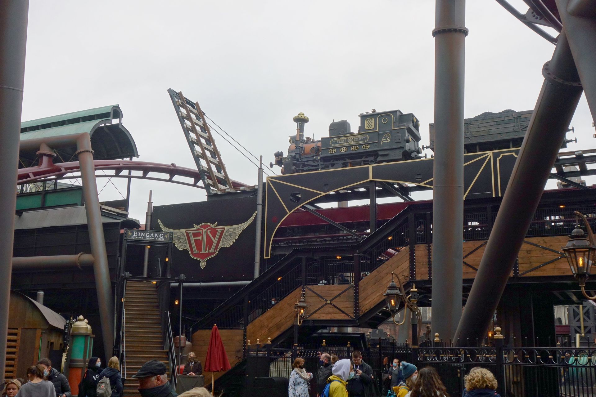 Der Beginn des ersten Launch soll wohl eine Drehbrücke darstellen. In deren Sockel führt die Warteschlange weiter.