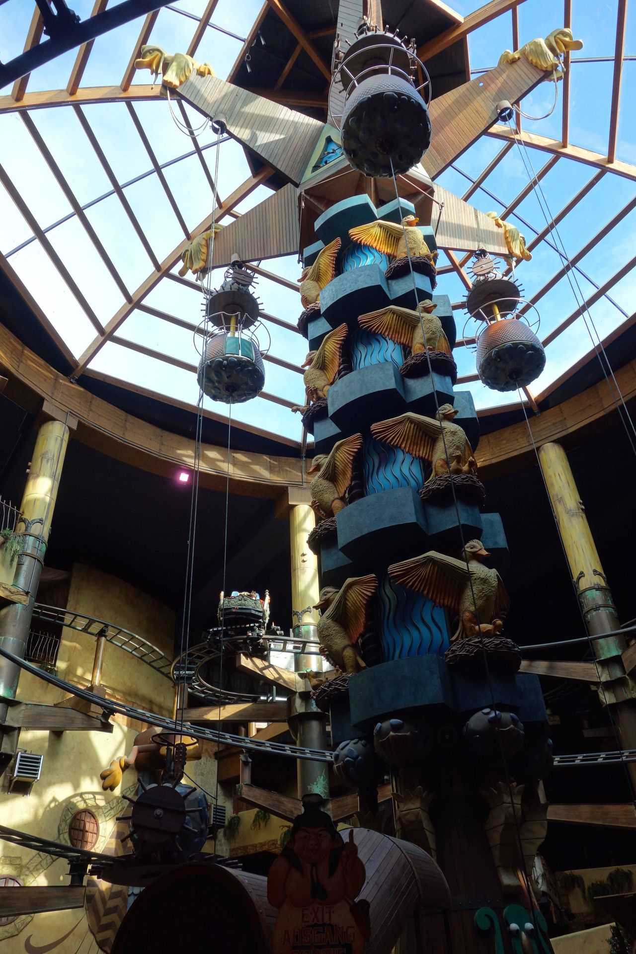 Irgendwann geht es aber doch noch ein letztes Mal begleitet von Wasserfontänen durchs Hotel und hinab in den Bremstunnel.