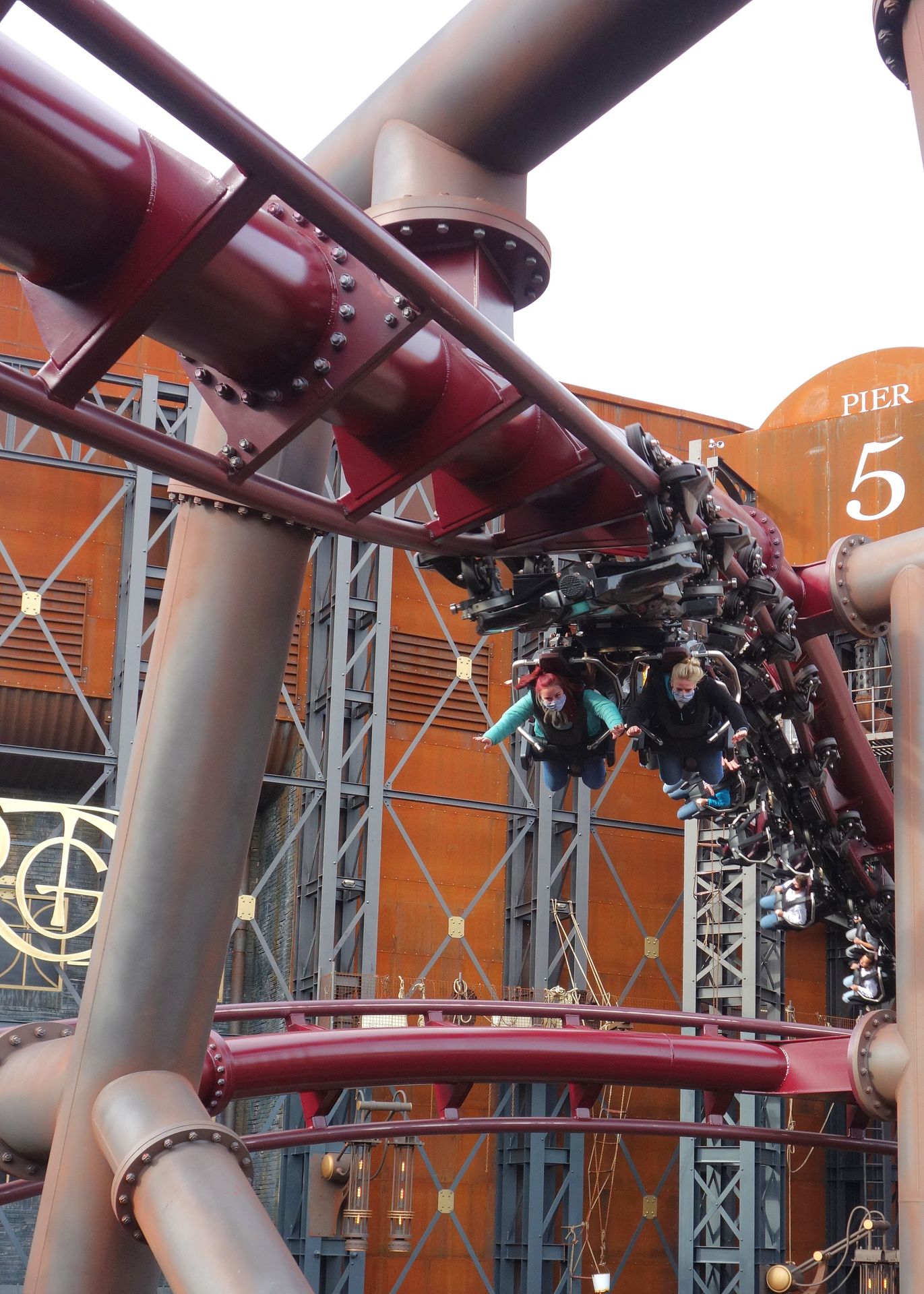 Die Drehung zurück in die Sitzposition empfand ich dann als nicht ganz so perfekt wie andersrum, aber das ist Meckern auf extrem hohem Niveau. An der separierten Ausstiegsplattform pellt man sich aus dem bequemen Sitz und kann auf der Rückseite des Schließfach-Ls seine Siebensachen einsammeln, ehe man das Armband am Drehkreuz einwirft und über eine Treppe zurück in den Themenbereich gelangt.