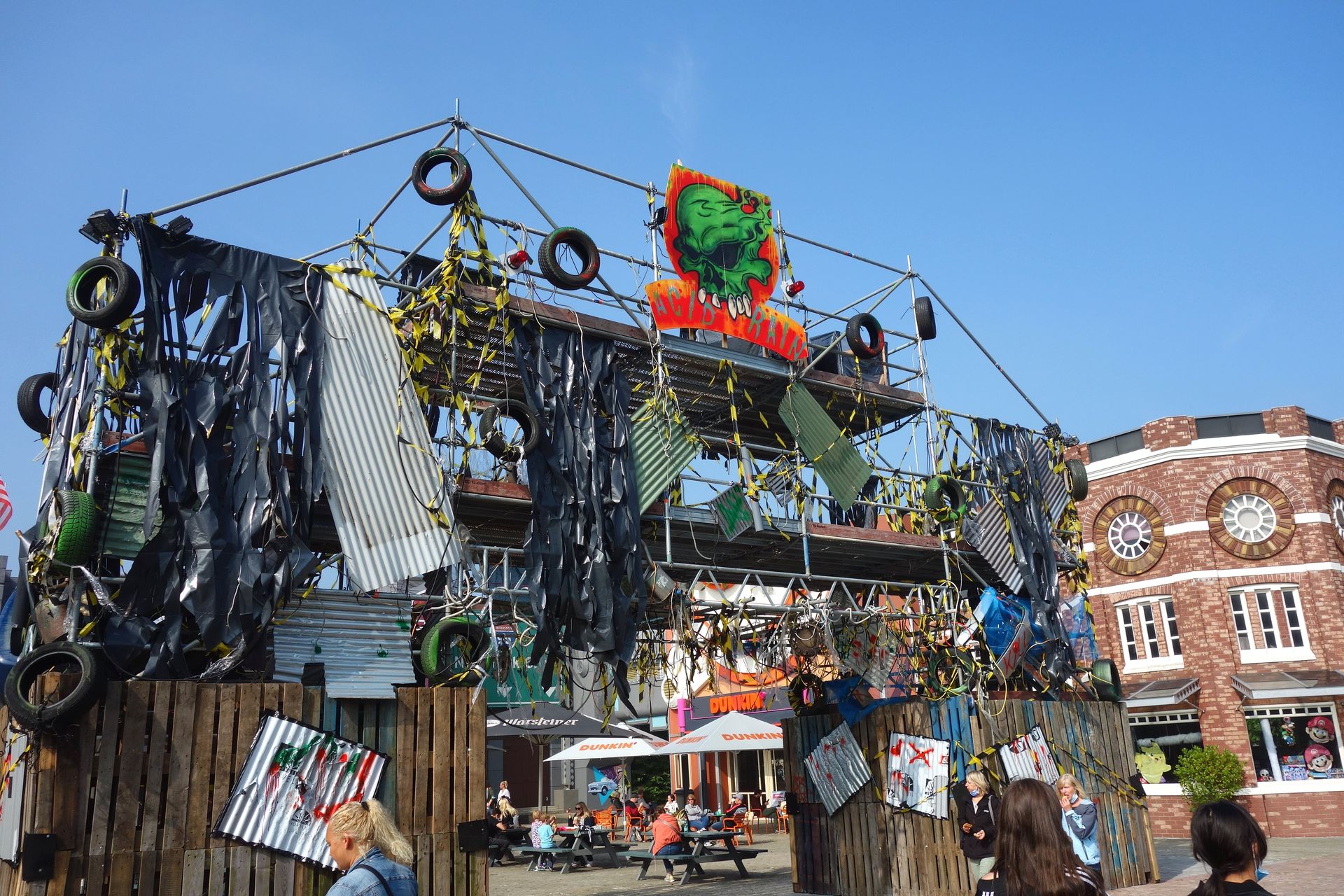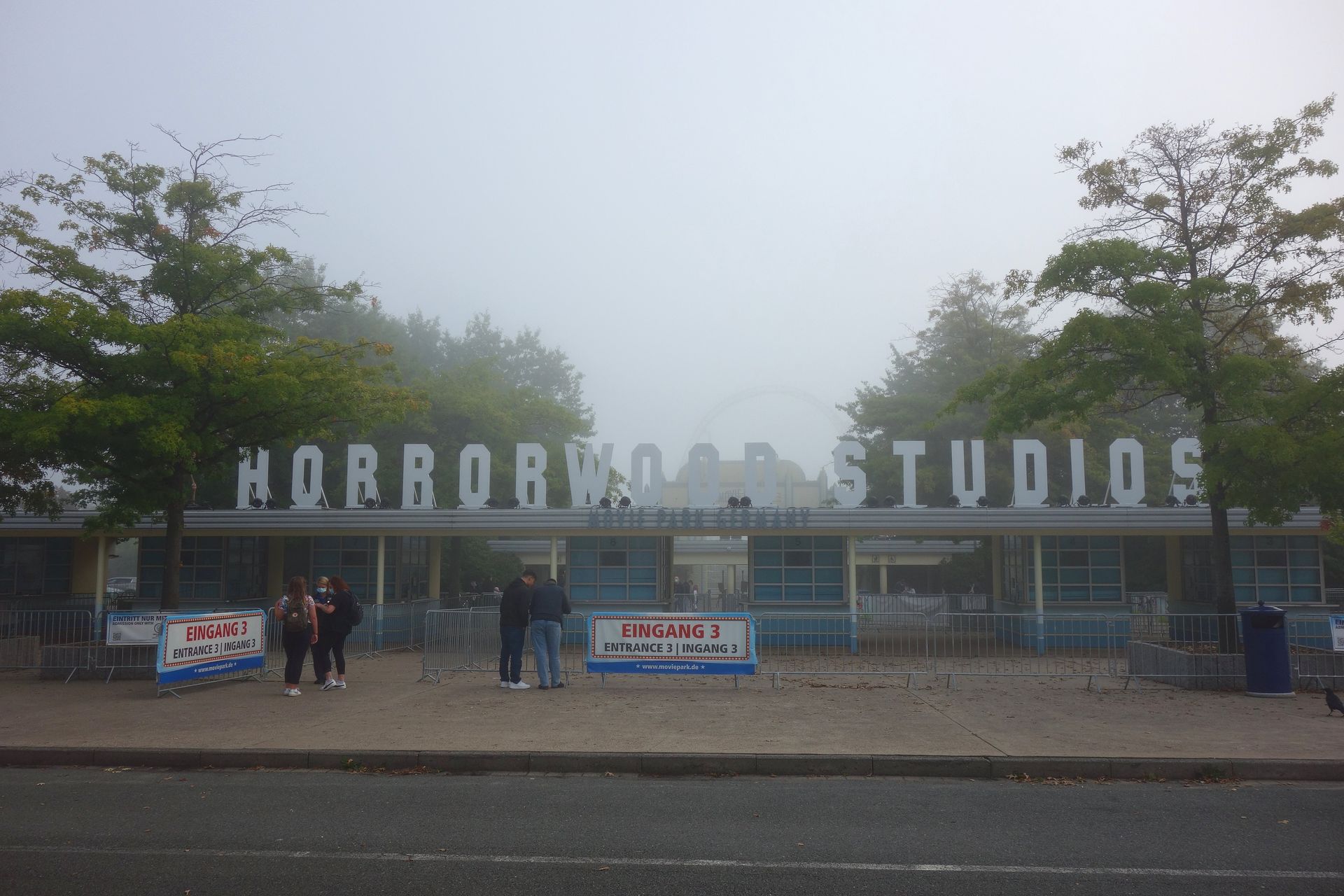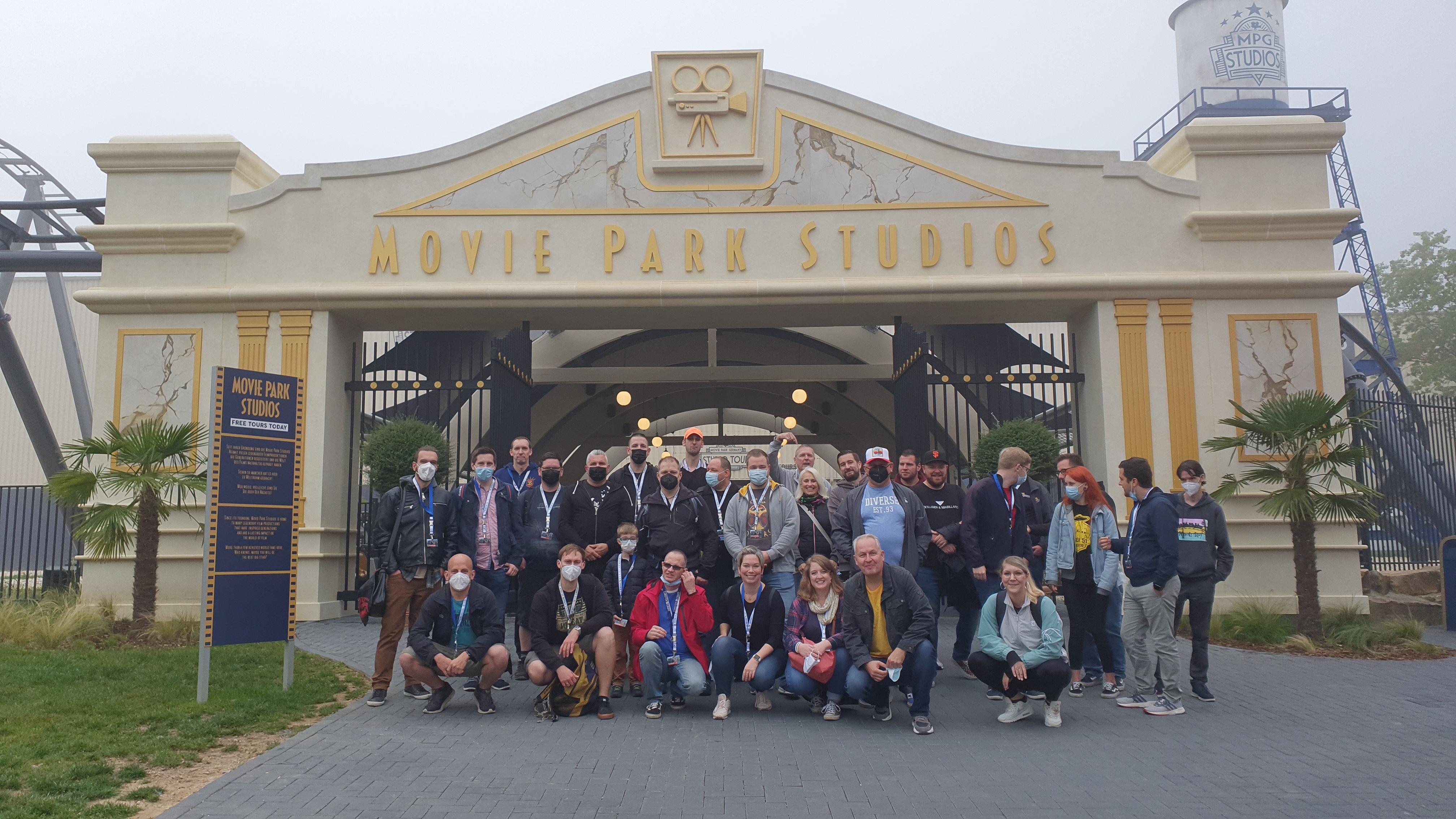 Nach und nach trudelten die weiteren Teilnehmer ein und es gab ein freudiges Wiedersehen mit neuen und alten Bekannten. Leider waren wir nicht gerade allein, an diesem Tag war nämlich auch Edeka-Tag, sodass sich auch eine nicht kleine Menge anderer Besucher auf dem Vorplatz einfand. Nachdem die Gruppe komplett war, ging es hinein in die Horrorwood Studios, wobei ich erstmals den QR-Code meines digitalen Impfnachweises testen konnte. Hier wurde der Code in der Tat gescannt und auch mit dem Personalausweis abgeglichen.