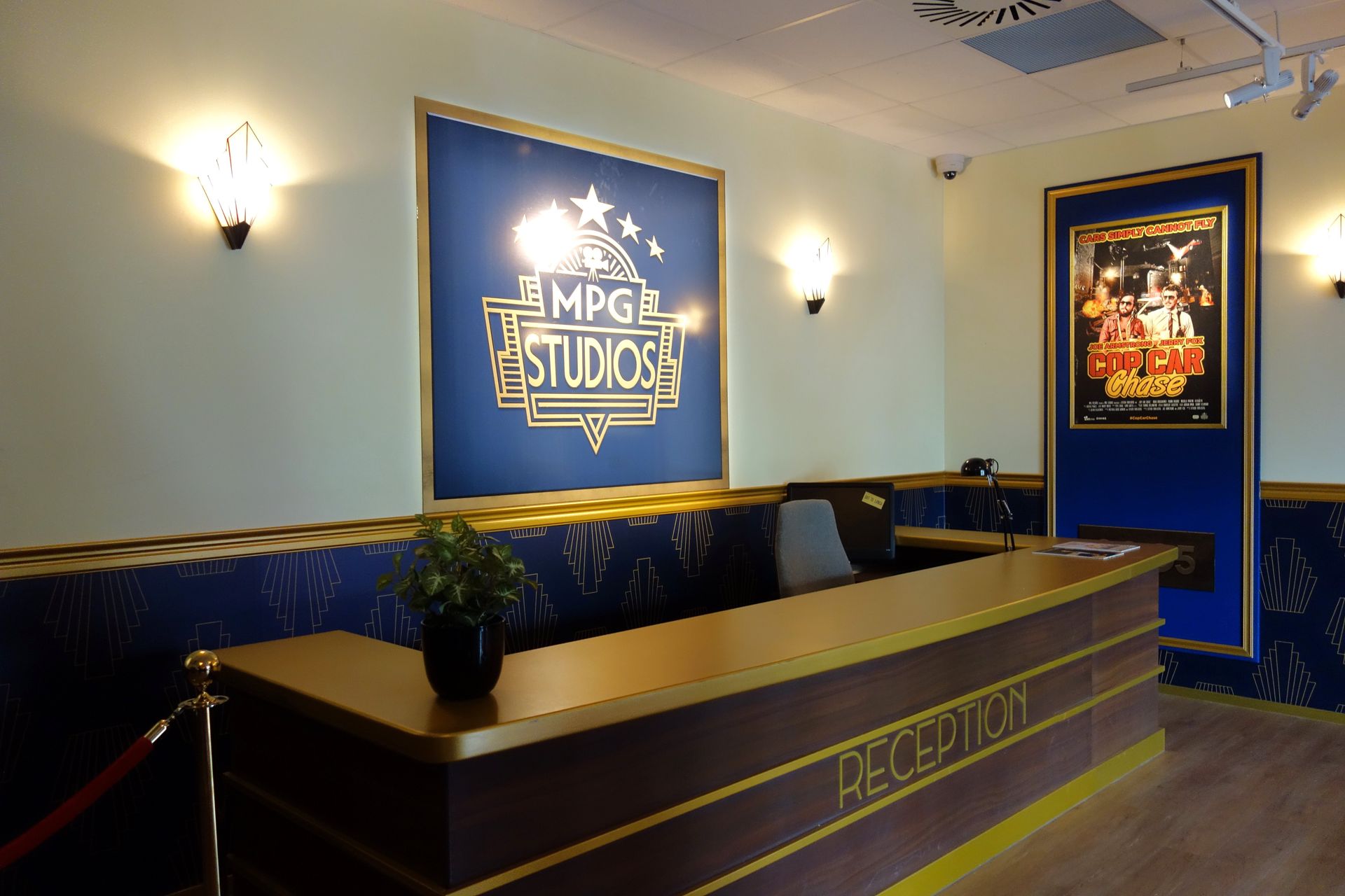 Stoßweise geht es dann in die schicke Rezeption der Studios.