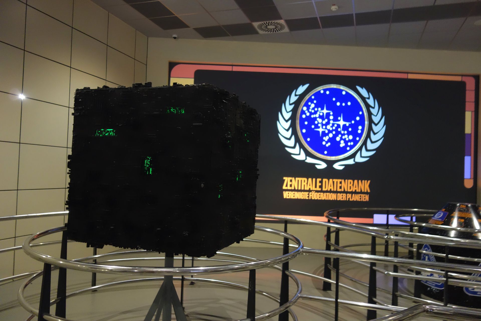 Mitten im Raum steht zudem ein Borg-Kubus und auf einer großen Leinwand werden die wichtigsten Elemente der Serie vorgestellt.