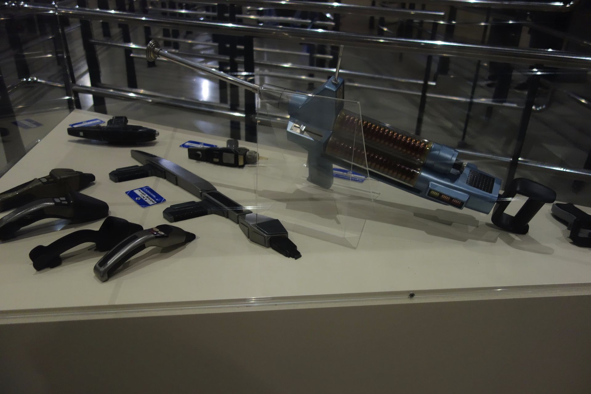 Da die Schlange entsprechend schon in den zusätzlich aufgebauten Bereich draußen reichte, ließen sich viele hier zunächst abschrecken. Letztendlich war man aber innerhalb von etwa 15-20 Minuten durch beide Räume durch und stand vor dem Mitarbeiter, der die Besucher Grüppchenweise passieren ließ. Leider wurde auch auf die sonst üblichen Pre-Shows verzichtet, sodass wir nicht auf die Enterprise hochgebeamt wurden, sondern einfach durch den Transporterraum hindurch liefen.