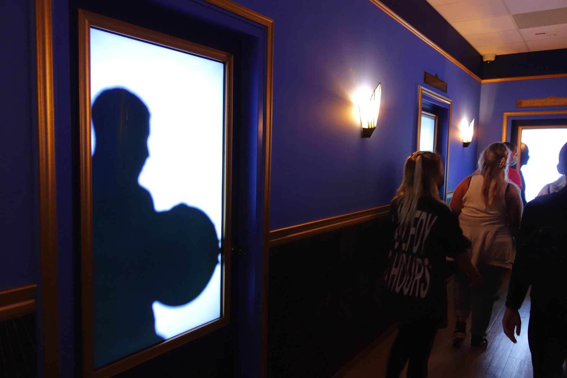 geht es durch einen Gang mit Türen zu verschiedenen Abteilungen der Studios, hinter denen offensichtlich reges Treiben herrscht.