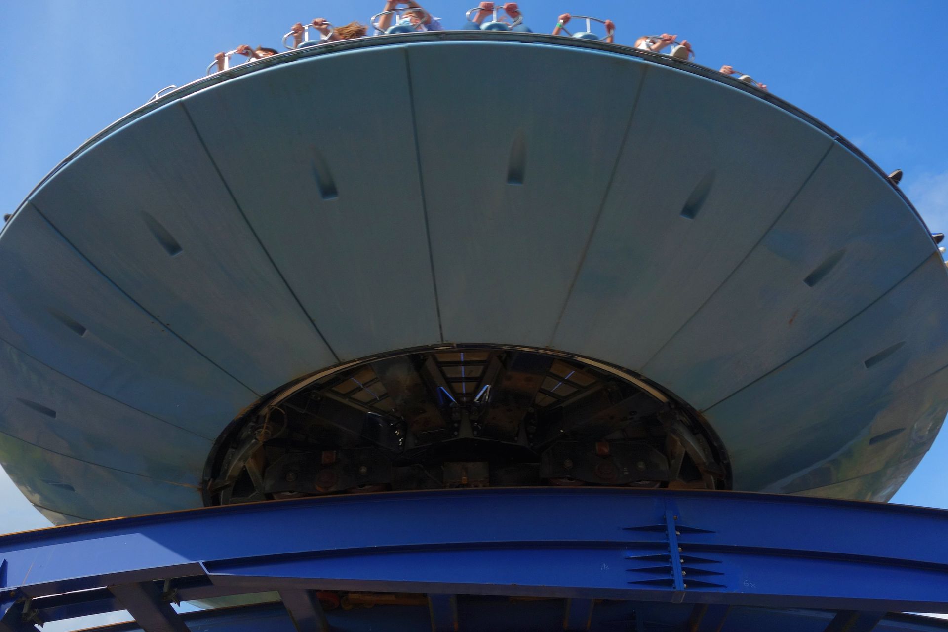 In einer Kurve geht es zurück auf den Boden und unter dem Wasserturm hindurch. Da kann wohl auch etwas Wasser runtertropfen, an diesem Tag aber nicht.