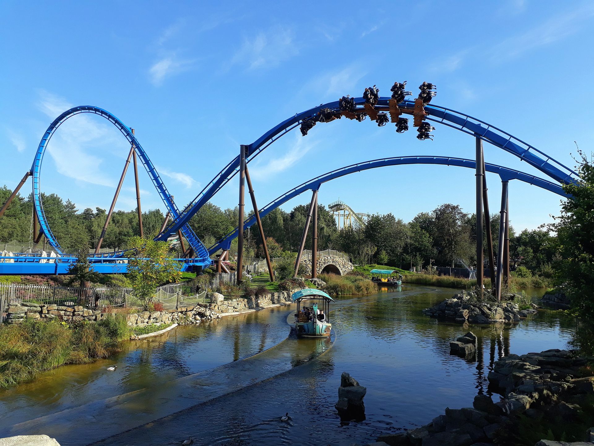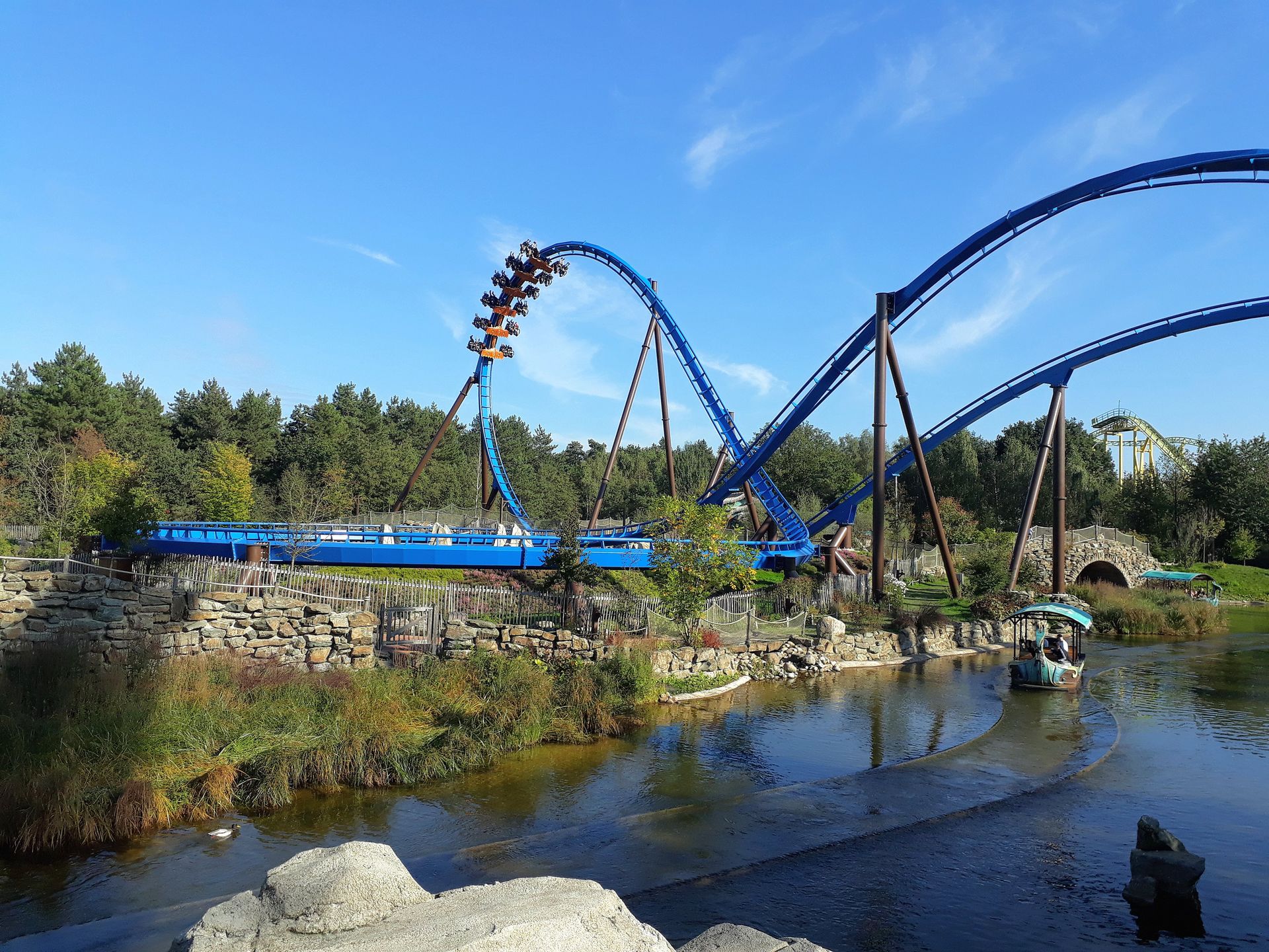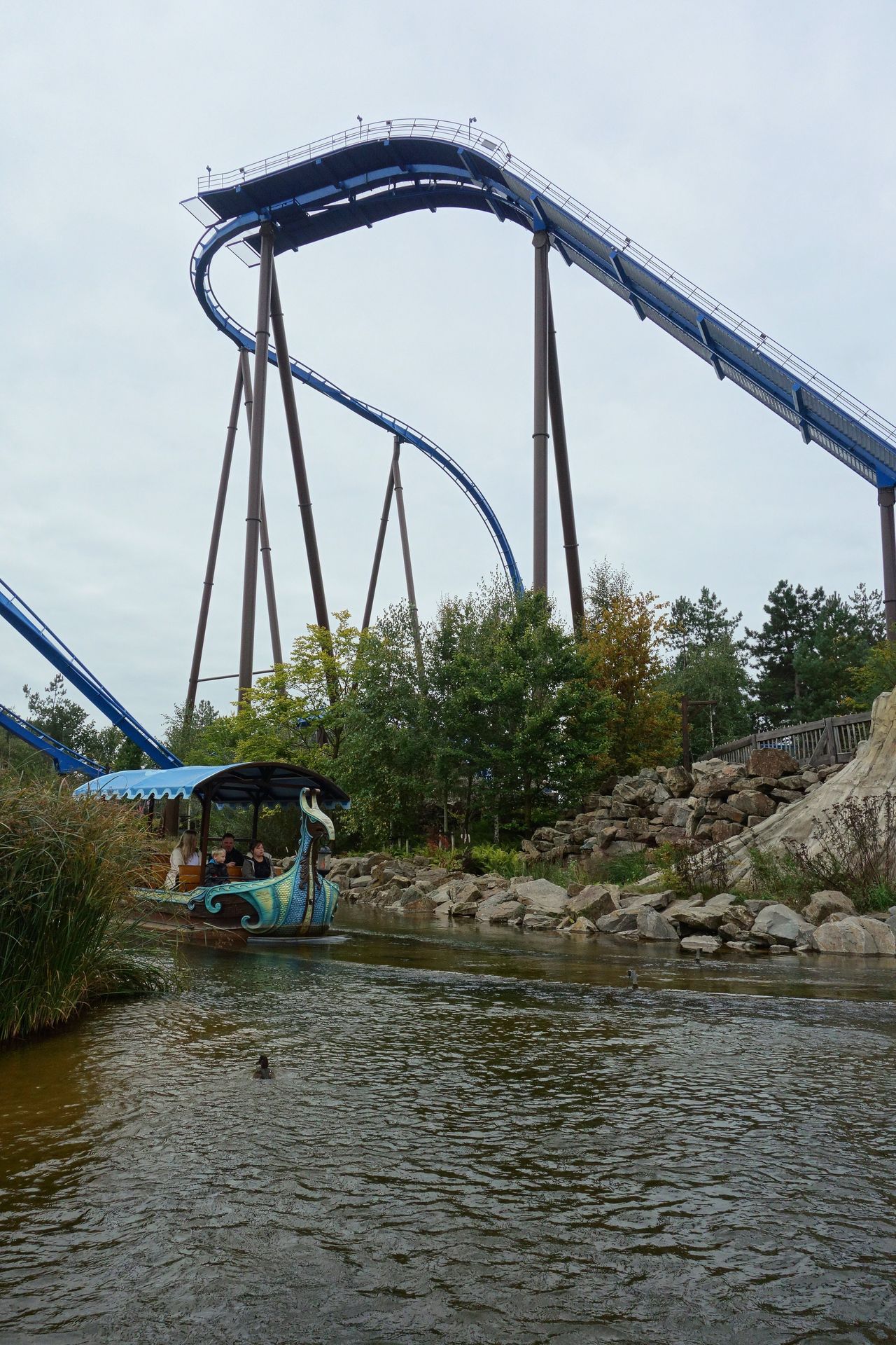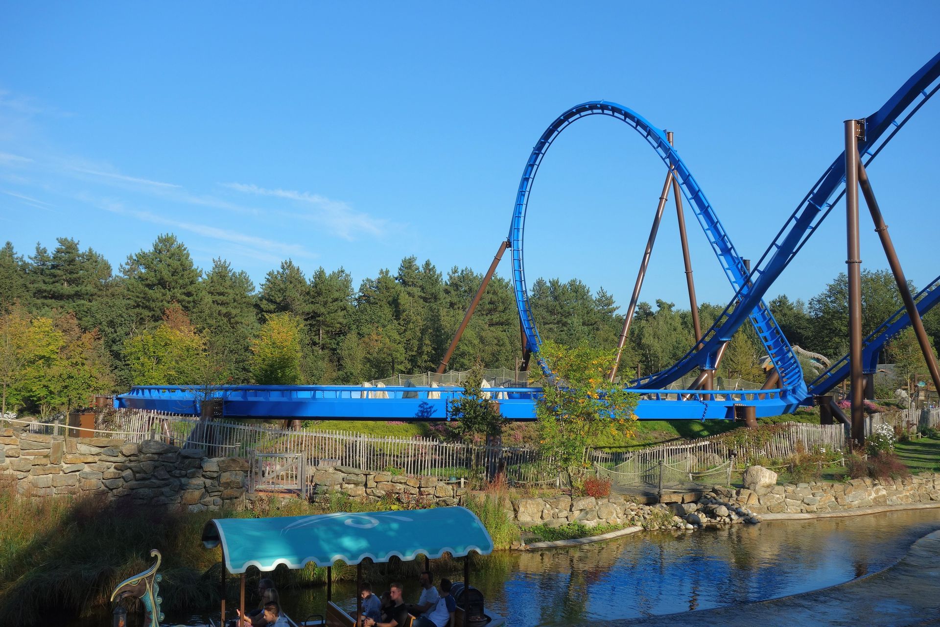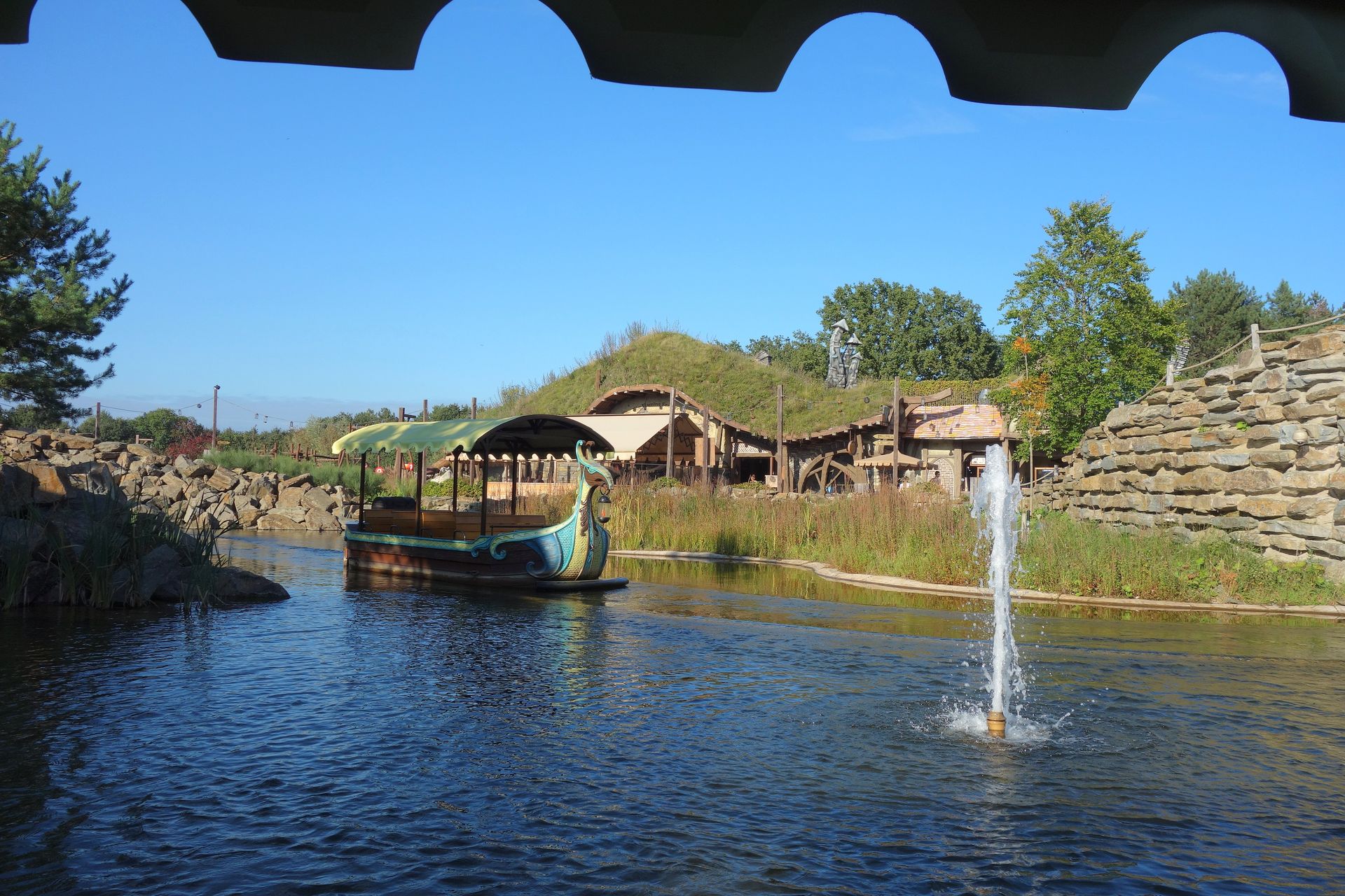 In den geräumigen Booten Platz genommen, schippert man aber zunächst einmal über den See unter Airtimehügel und Zero-G Roll von Fenix hindurch.