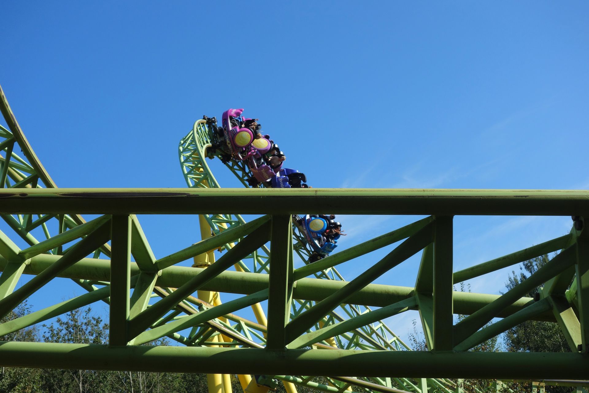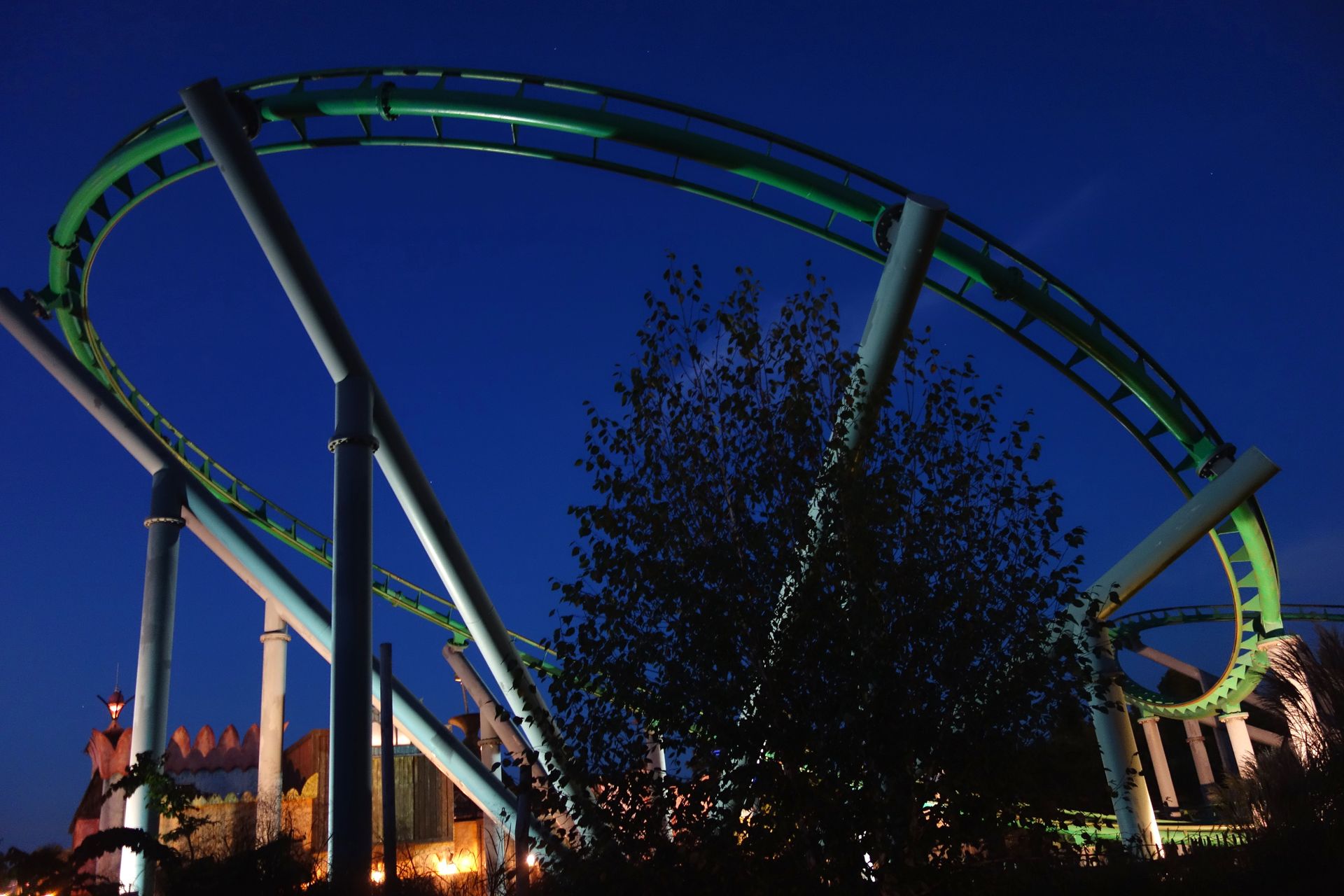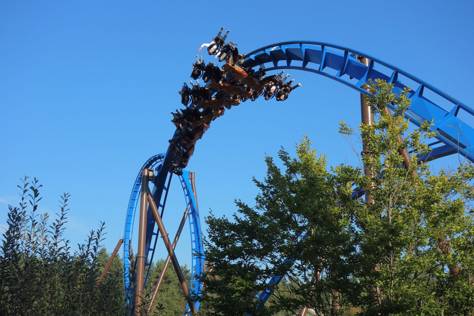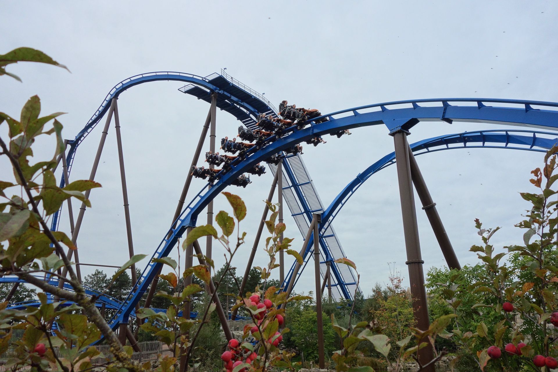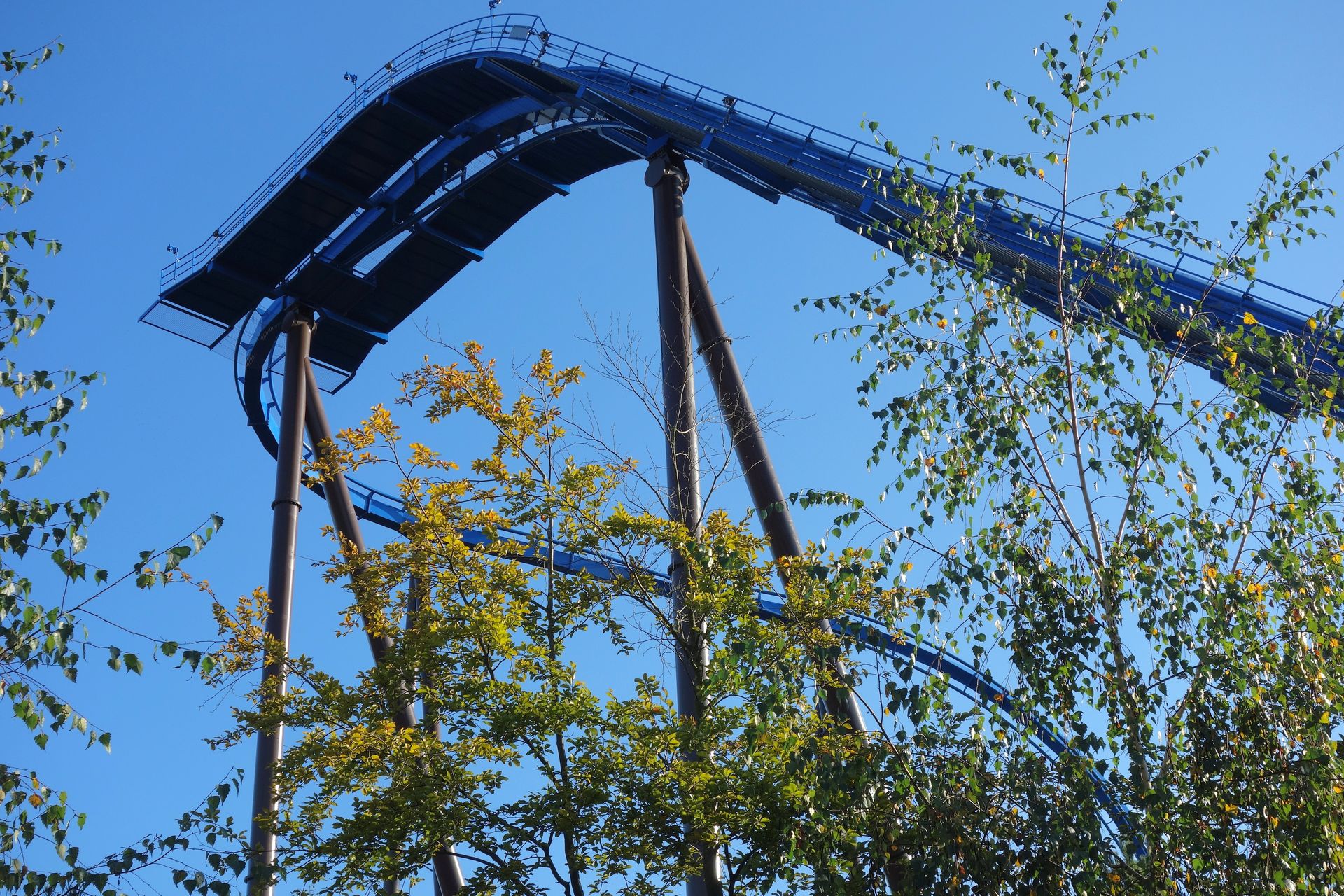 Stattdessen führt die Fahrt auf der Rückseite der Helix entlang. Schließlich noch unter der Auffahrt des Immelmanns hindurch, dann erreicht man wieder die Station.