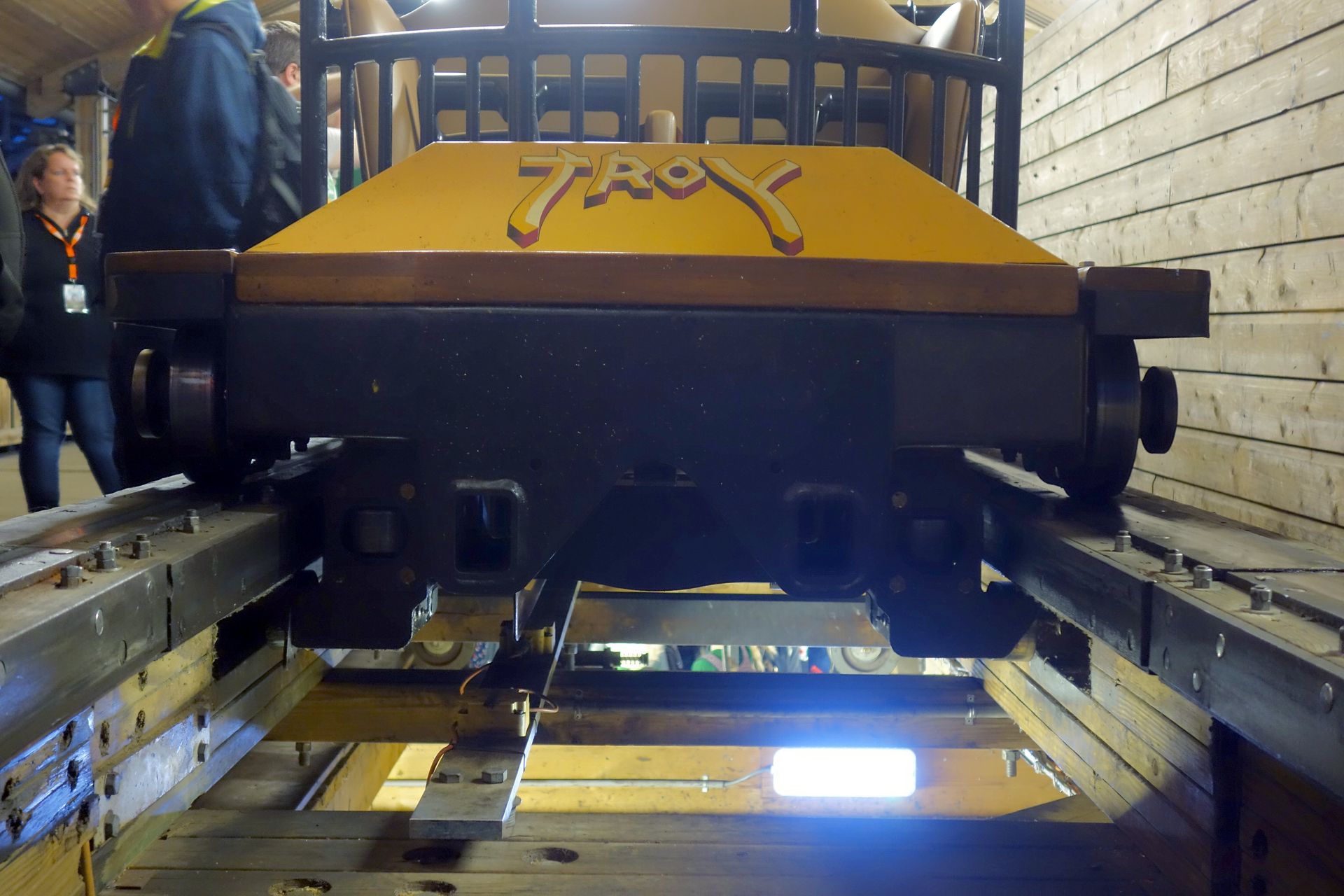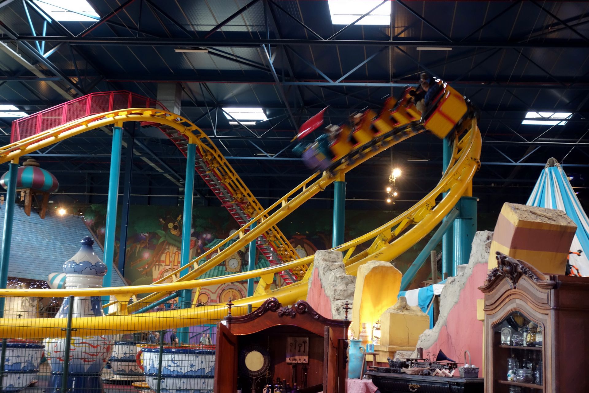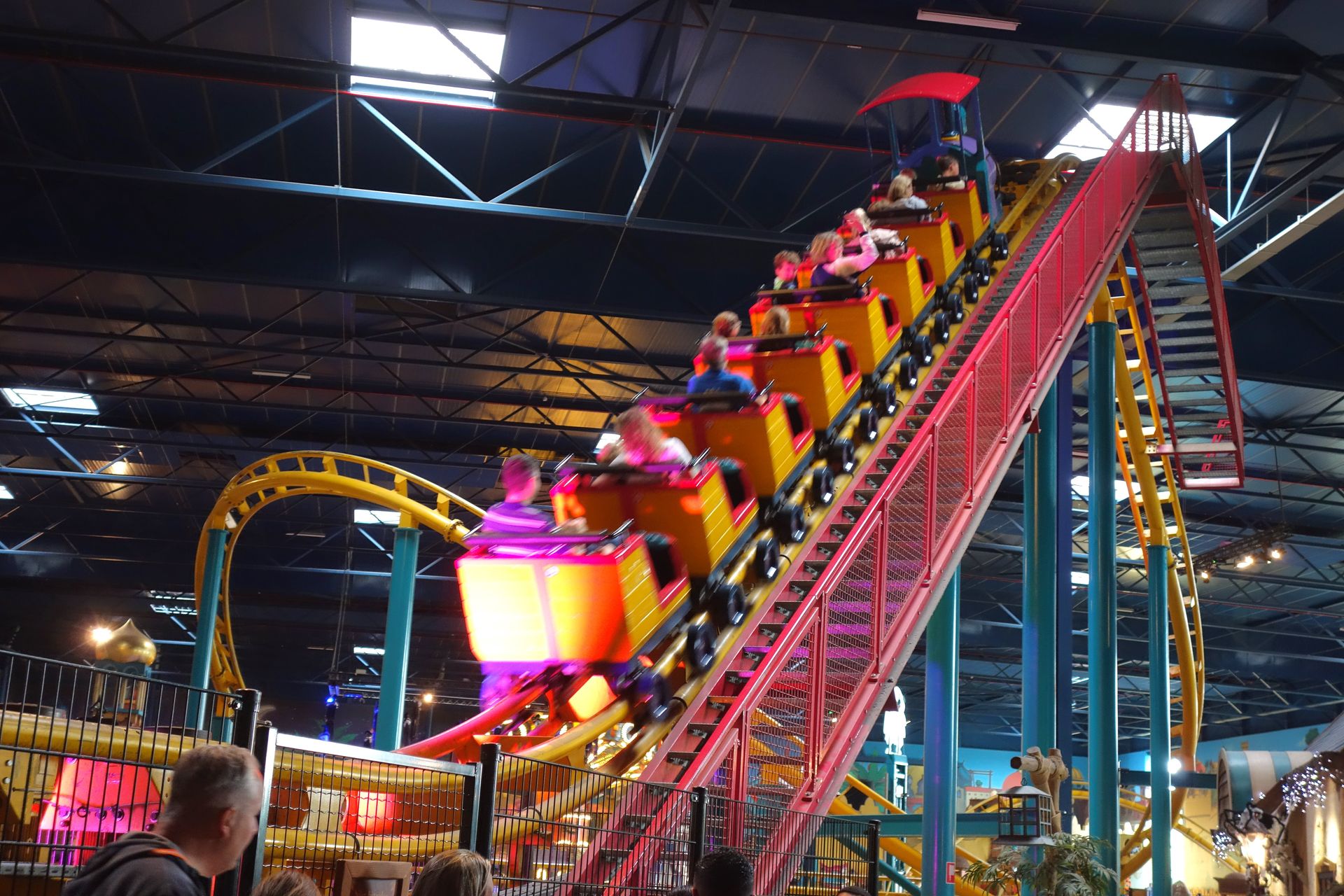 Den Kids, die vor uns dran waren, gefiel der Junior Coaster sehr gut. Und ich mag die Fahrt quer durch die Halle zwischen den übrigen Attraktionen hindurch ebenfalls.
