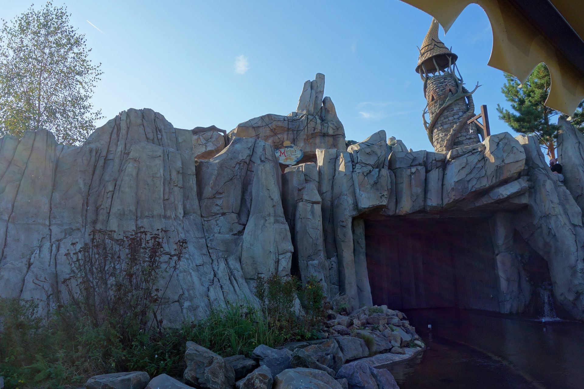 Der Zugang befindet sich unterhalb des Turms von Merlin.