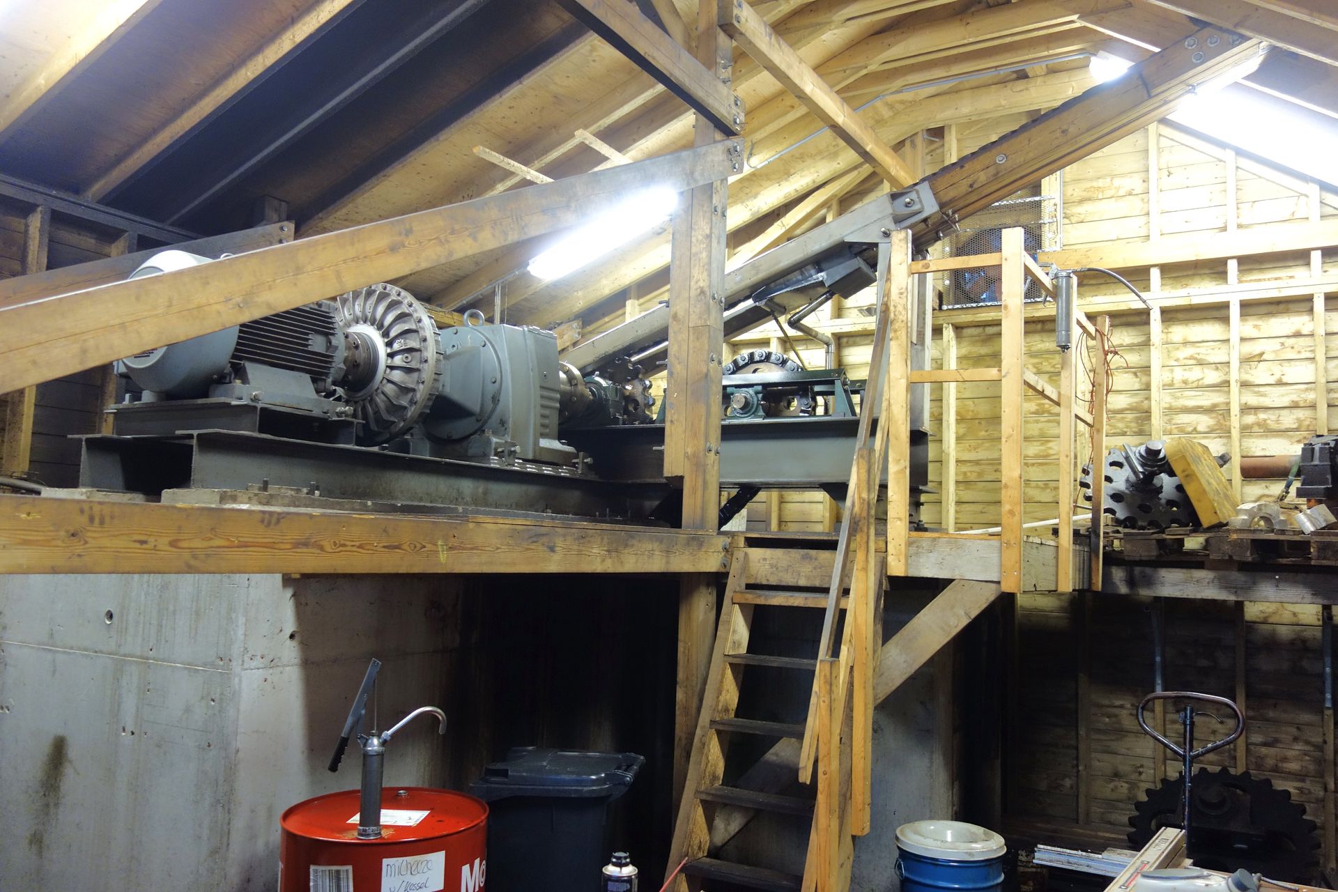 Um den Zug besser von unten begutachten und warten zu können, gibt es wenigstens ein kleines, fahrbares Holztreppchen.