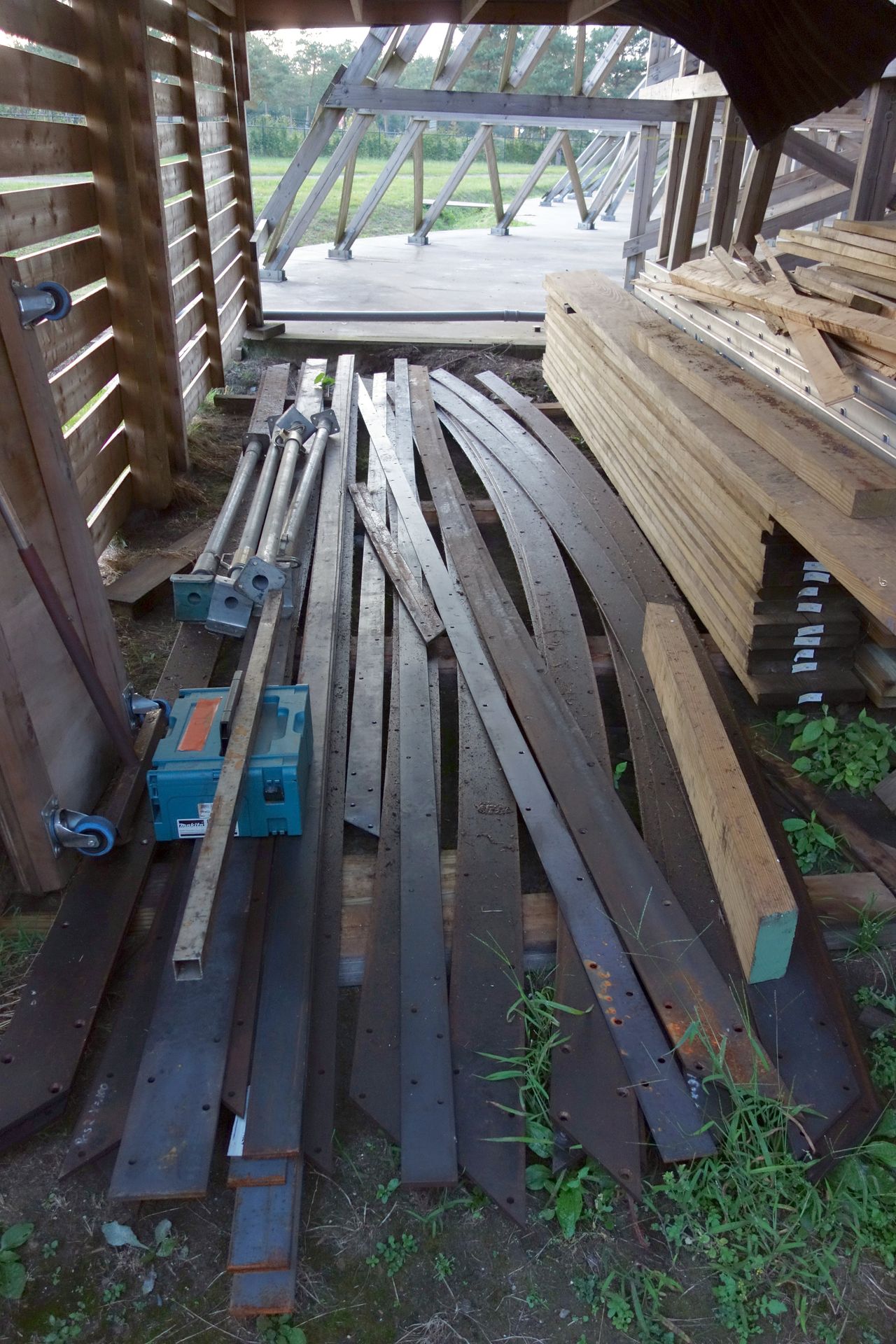 Dort lagert etwas Holz und ein paar Metallstücke für die Schienen. Also das Ersatzteillager für die Strecke.