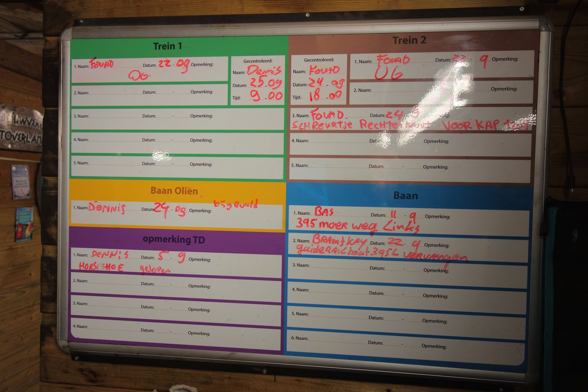 Auffälligkeiten bei den täglichen Prüfungen werden auf einer Wartungstafel notiert.