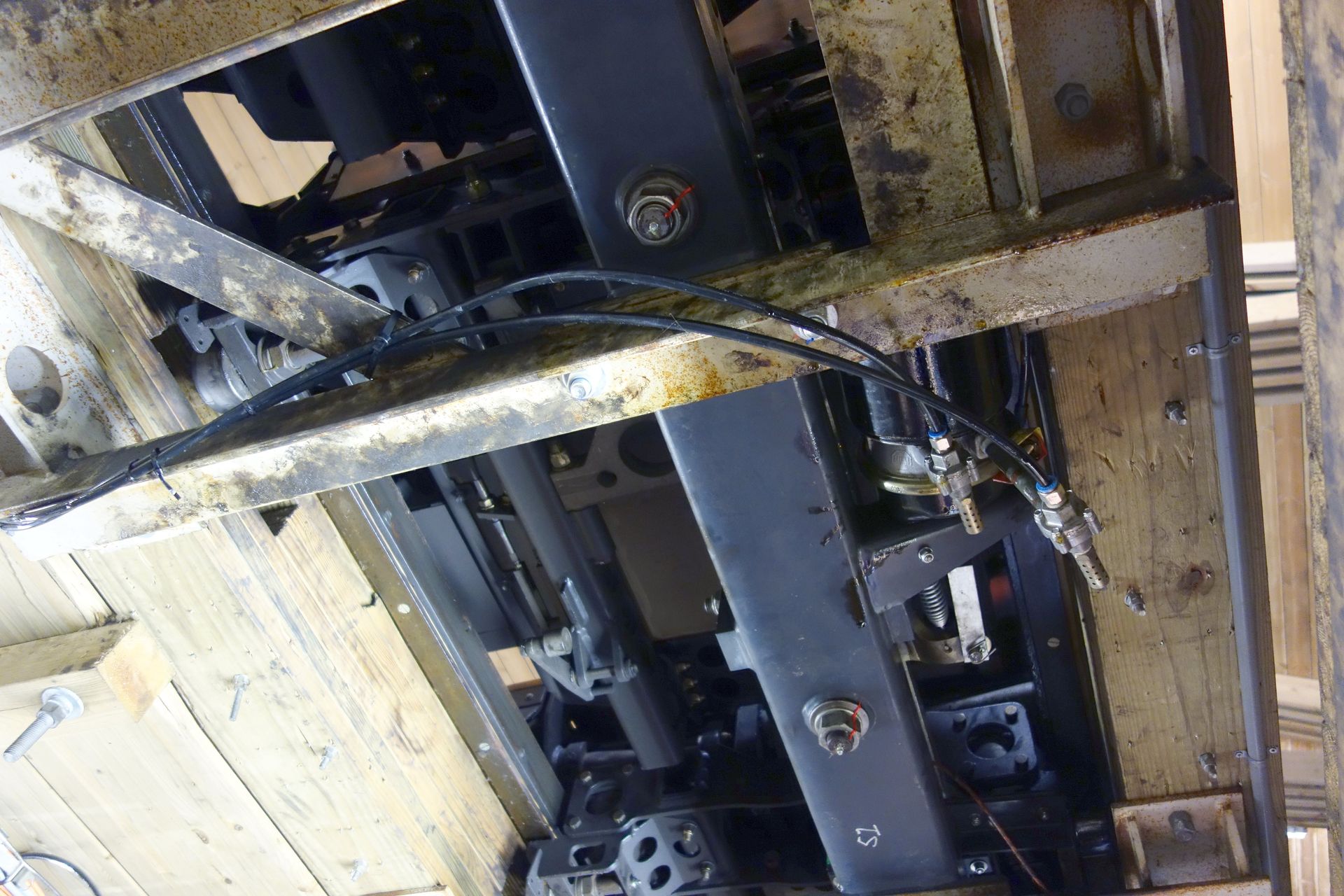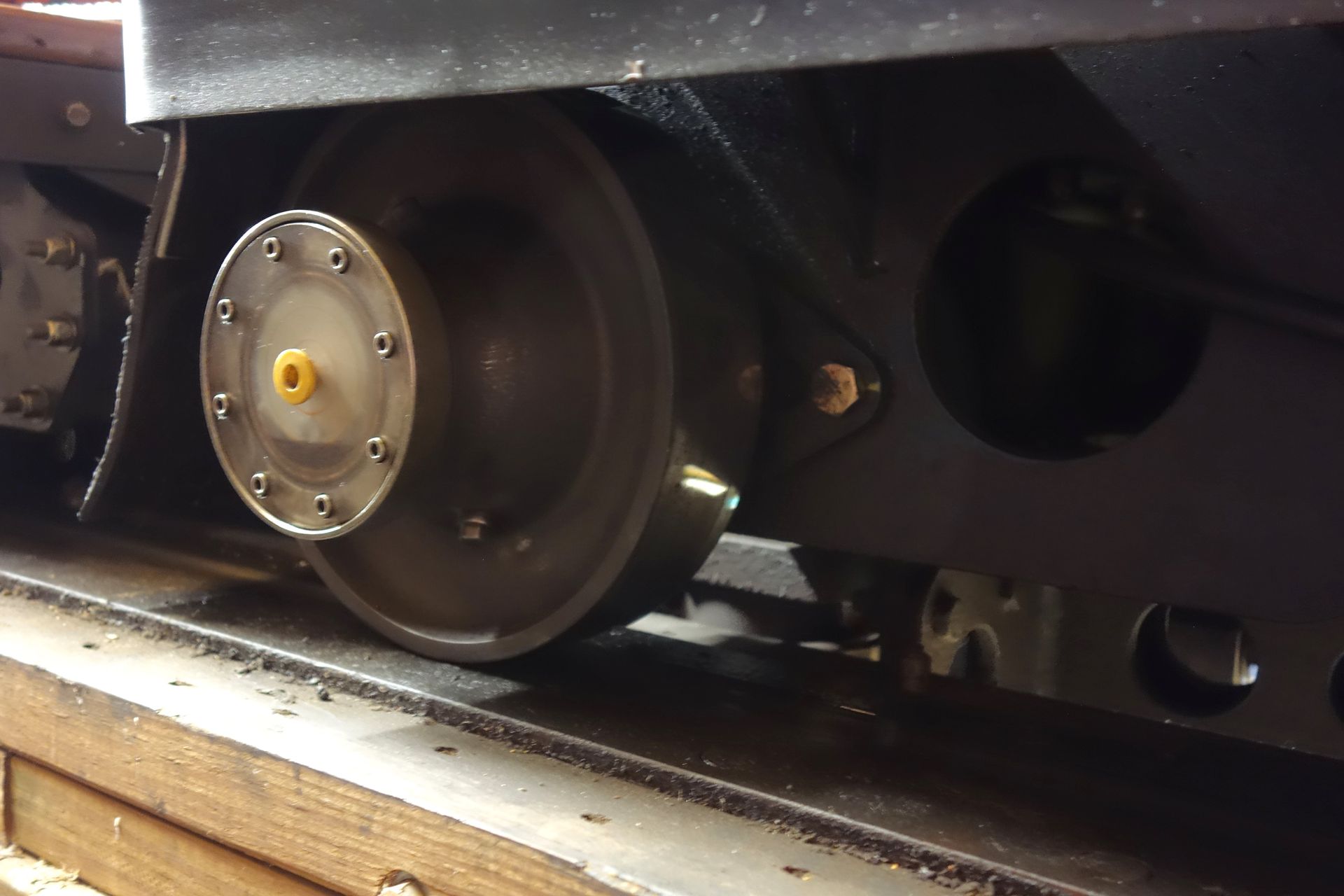 Unter der Schlussbremse hat man einen kleinen Bretterverschlag installiert.