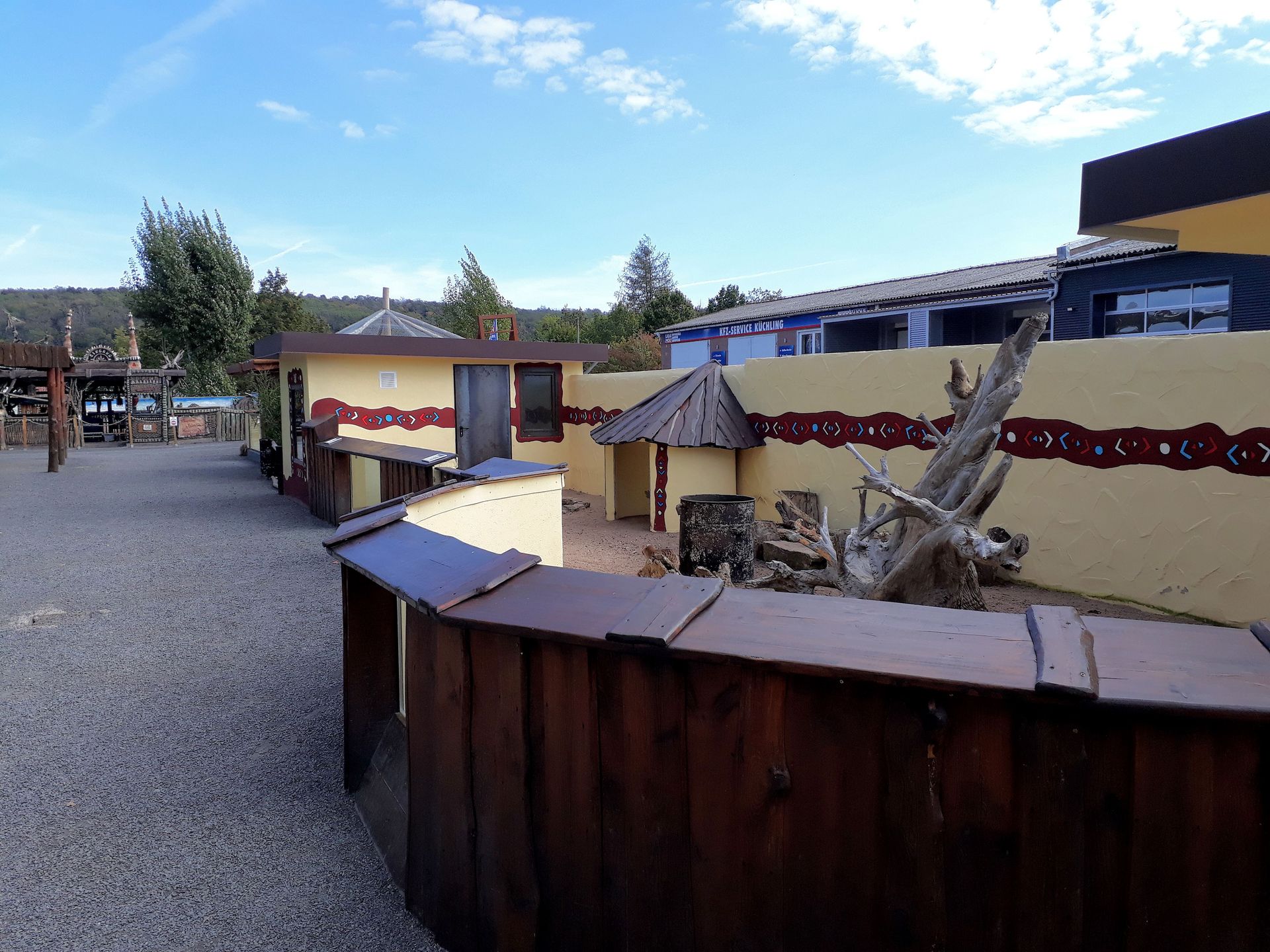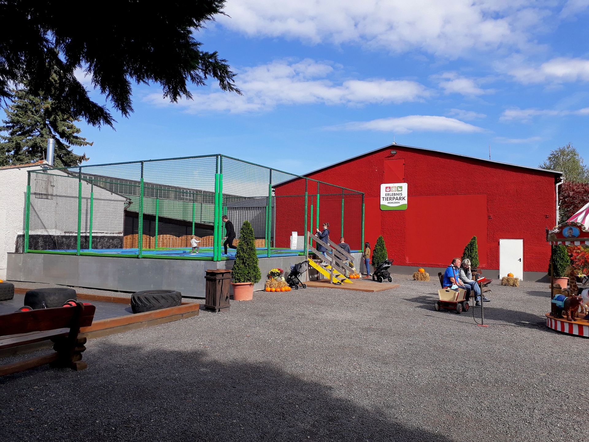 Letzteres wurde 2017 durch Trampoline ersetzt. Die Eisenbahn mitsamt kleinem Tunnel wurde offenbar 2020 abgerissen, auch wenn sie noch immer auf der Webseite aufgeführt wird. In der roten Halle im Hintergrund befand sich früher eine Dschungelhalle, in der Vögel und Affen frei herumfliegen, bzw. -klettern konnten. Dort wurde zur Saison 2019 allerdings die neue Show-Arena eingerichtet, da die alte in der großen Halle wie gesagt dem bislang noch immer nicht eröffneten Indoor-Spielplatz weichen musste.