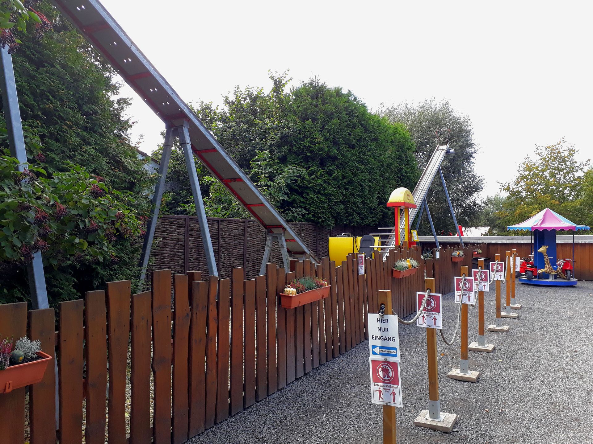 Links vom Eingang dreht die Kongo-Bongo-Gebimmelbahn als erstes Fahrgeschäft ihre Runden.