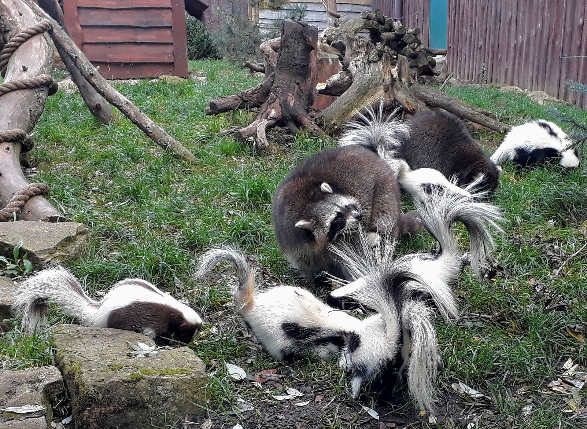 Quasi in Verlängerung zum Afrika-Gehege hinter der Halle tummeln sich noch ein paar Waschbären nebst auf dem Parkplan nicht aufgeführter Stinktiere.