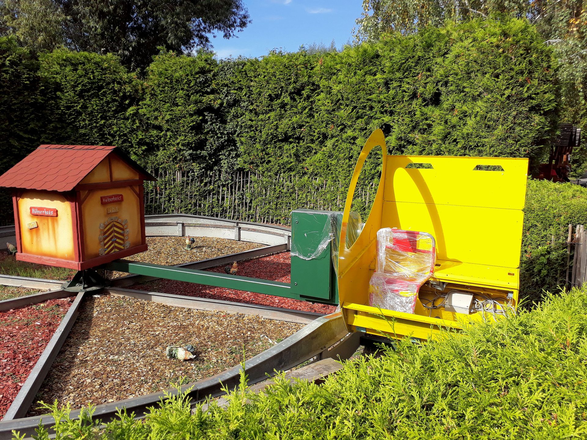 Butterfly aber schon 1992 für den baden-württembergischen Familien Park in Villingen-Schwenningen. Nach dessen Schließung kam das Fahrgeschäft dann nach Memleben. Positiv anzumerken ist, dass die Fahrt hier nicht extra kostet. Außerdem ist das auf älteren Bildern zu sehende Schild mit der Bitte, während der Fahrt nicht zu kreischen, nicht mehr vorhanden. Etwas bedenklich fanden wir, dass zumindest wir die Tür selbst zuhalten mussten. Selbst während der Fahrt wäre sie sonst wieder aufgegangen. Aber vielleicht waren wir auch schlichtweg zu doof, bei später beobachteten Fahrt blieb die Tür von selbst zu.