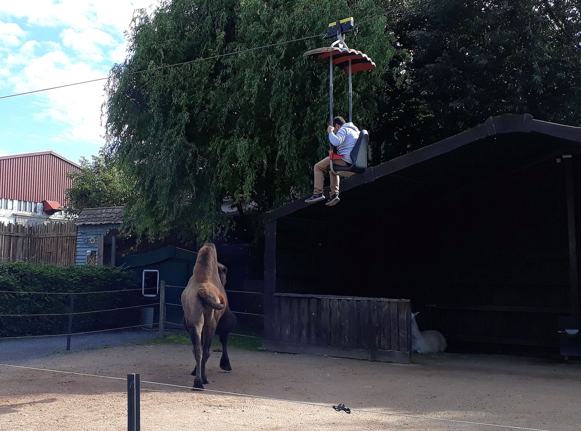 Die ebenfalls zu sehende Heege-Seilbahn quer über das Gehege beginnt in der Sackgasse direkt neben der Seebären-Arena und führt zunächst über eben jene und hinweg. Entsprechend ist eine Nutzung während der Show logischerweise nicht gestattet. Ein Stück weiter hätte man bis vor wenigen Jahren sogar im Park übernachten können. Ähnlich wie die Schäferwagen in Tripsdrill, hier waren es aber natürlich alte Zirkuswagen.