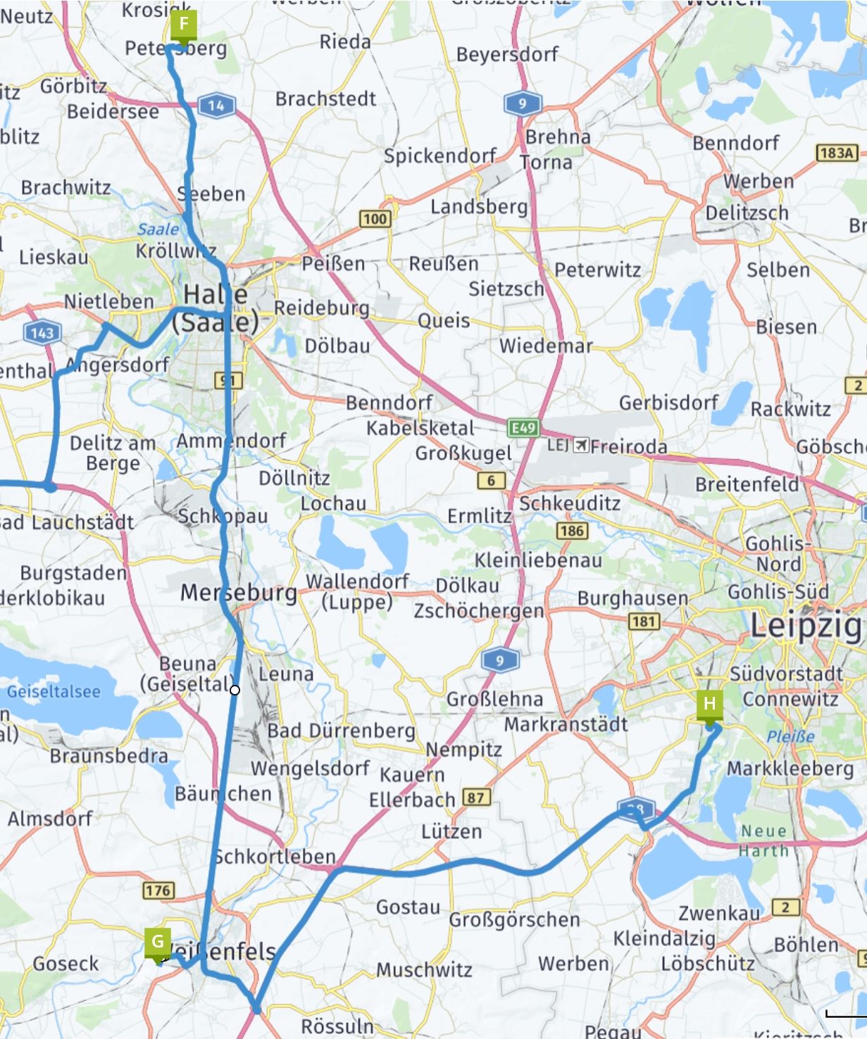 Nach dem nördlichsten Ziel der Tour ging es nun wieder deutlich nach unten - also nach Süden. Vor dem Hotel in Leipzig steuerten wir aber noch Weißenfels an.