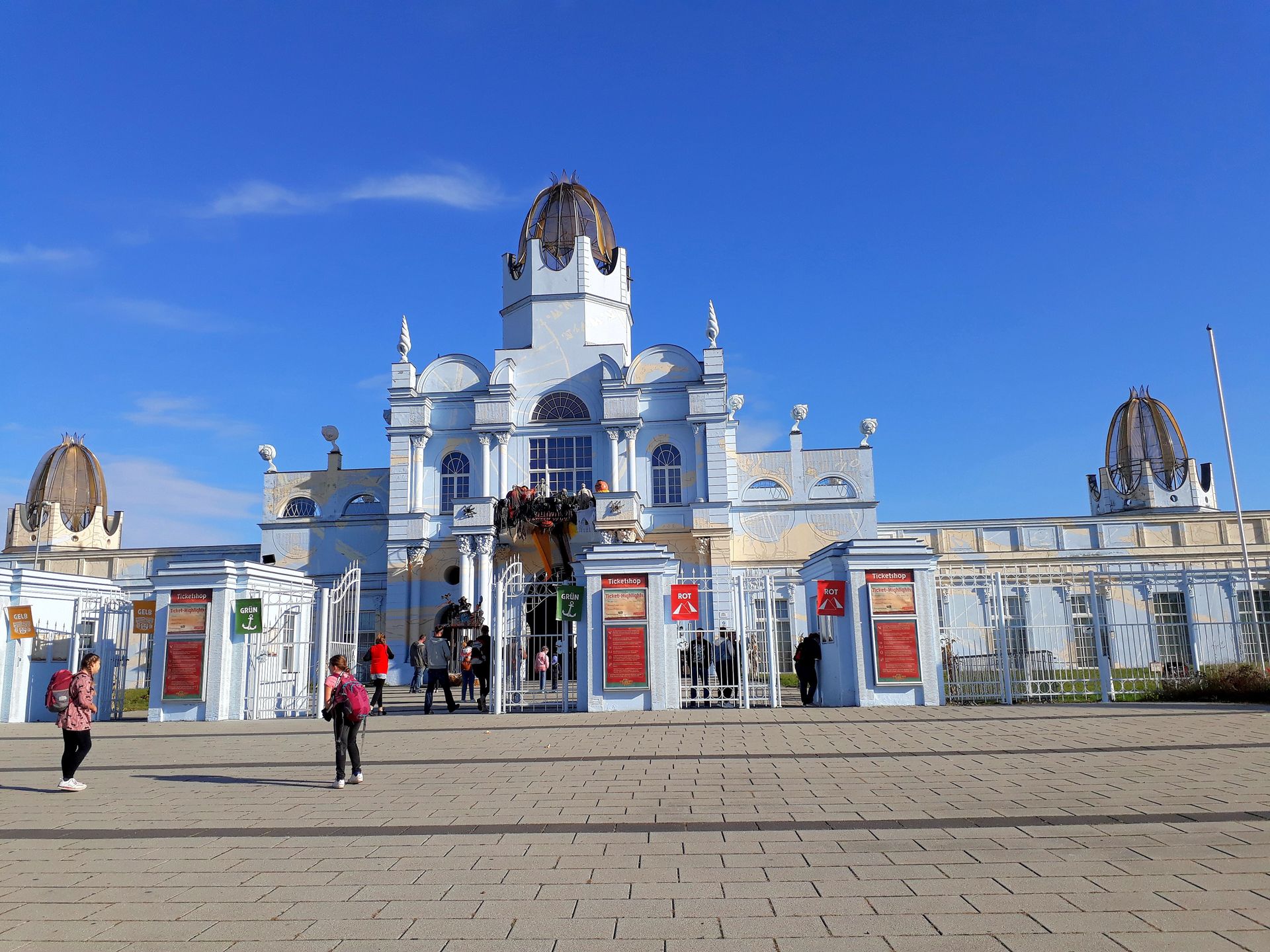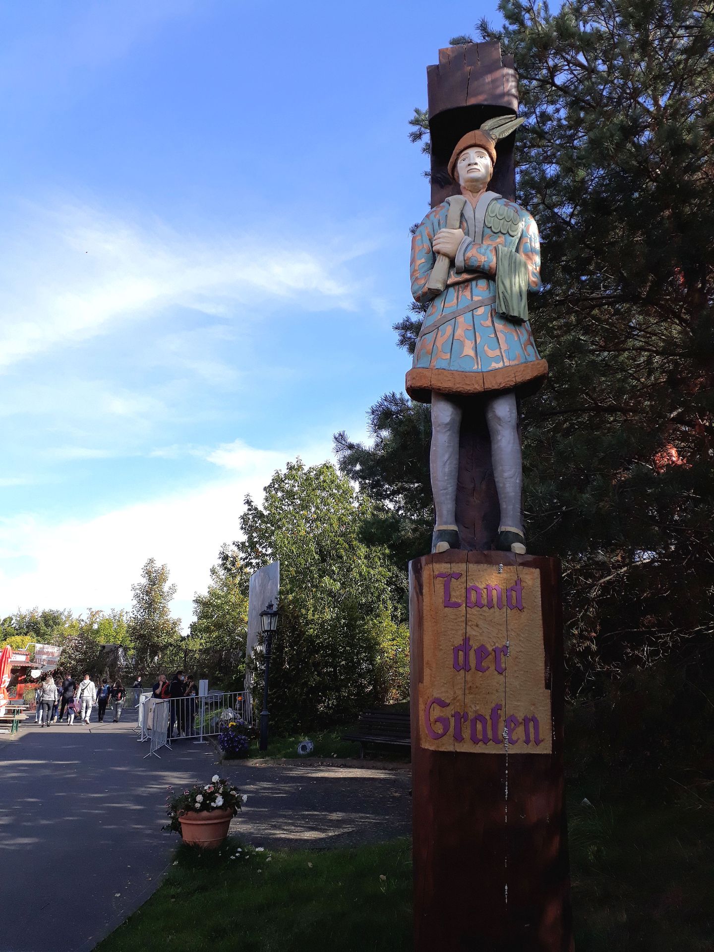 - und wir ja unsere Tickets eh schon hatten, gingen wir schließlich einfach durch die Mitte vor zum Eingang. Die dortige Mitarbeiterin interessierte sich weder für unsere Reservierungen, noch für die vorbildlich auf dem Smartphone präsentierten Impfzertifikate. Zitat: "Aktuell ham wa hier ja kein Corona." Dabei war in den ganzen Mails vom Park immer wieder eindringlich darauf hingewiesen worden, dass man auch ja an die Reservierung und die Impfnachweise denken sollte. Nunja, mir war es im Endeffekt egal.