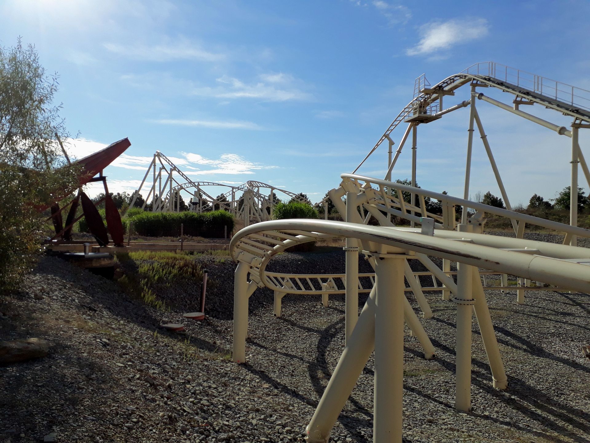 Die Achterbahn selbst steht dann allerdings ziemlich nackt inmitten einer Kieswüste.