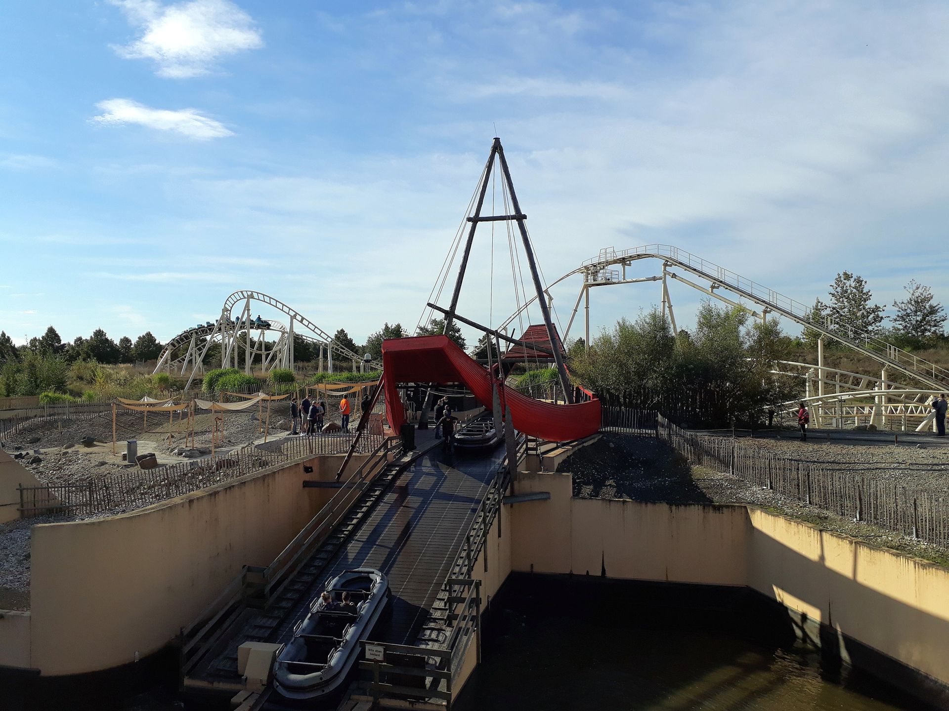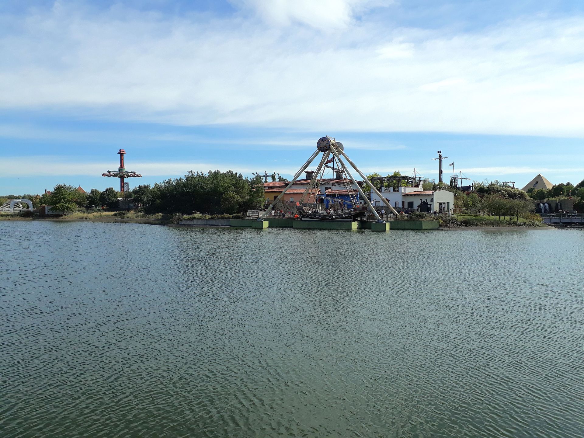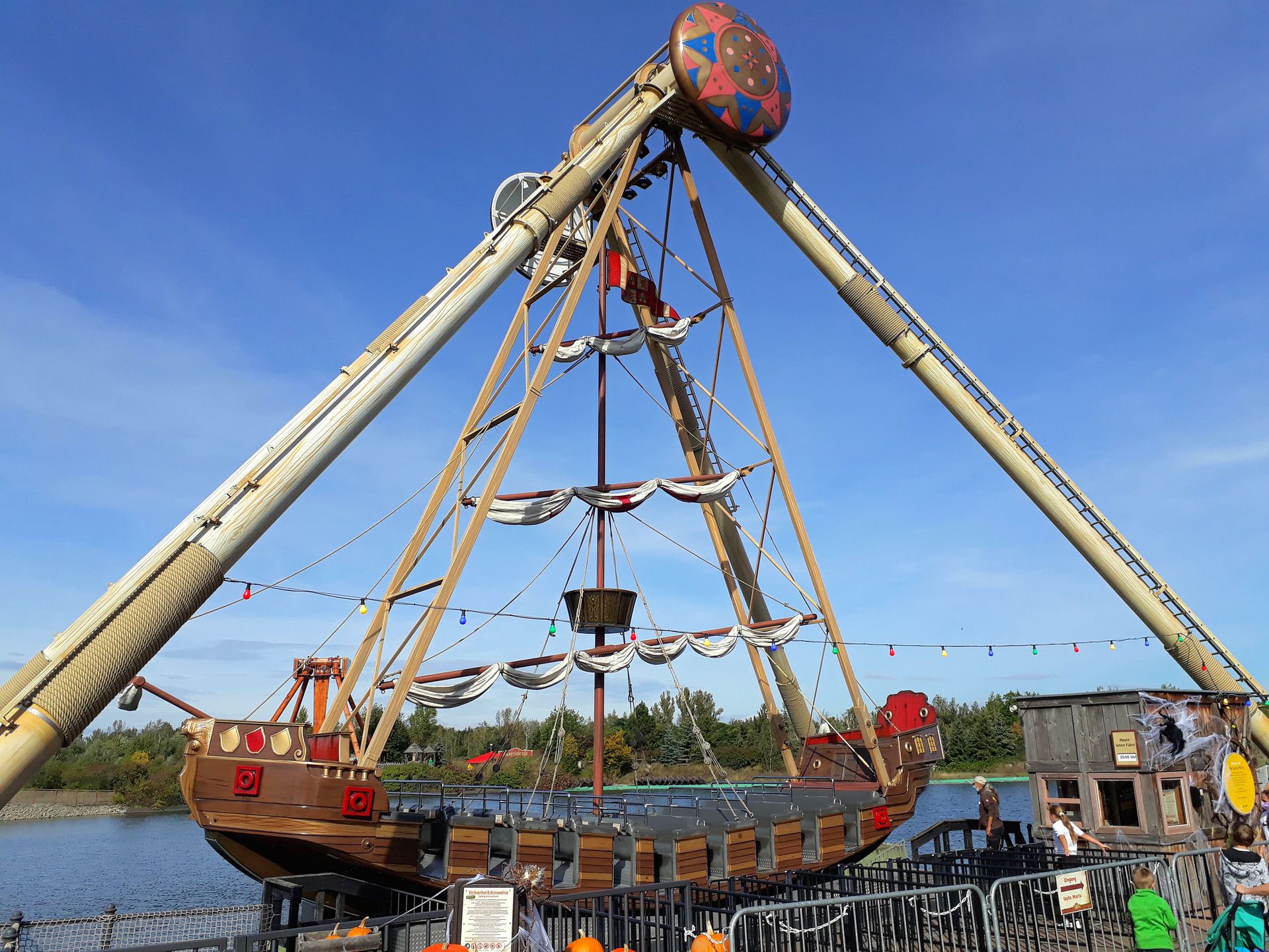 Bei letzterem handelt es sich um einen Dynamic Tilt Tower von abc rides, der als Hauptmast des gestrandeten Piratenschiffs von mir tatsächlich komplett übersehen wurde.