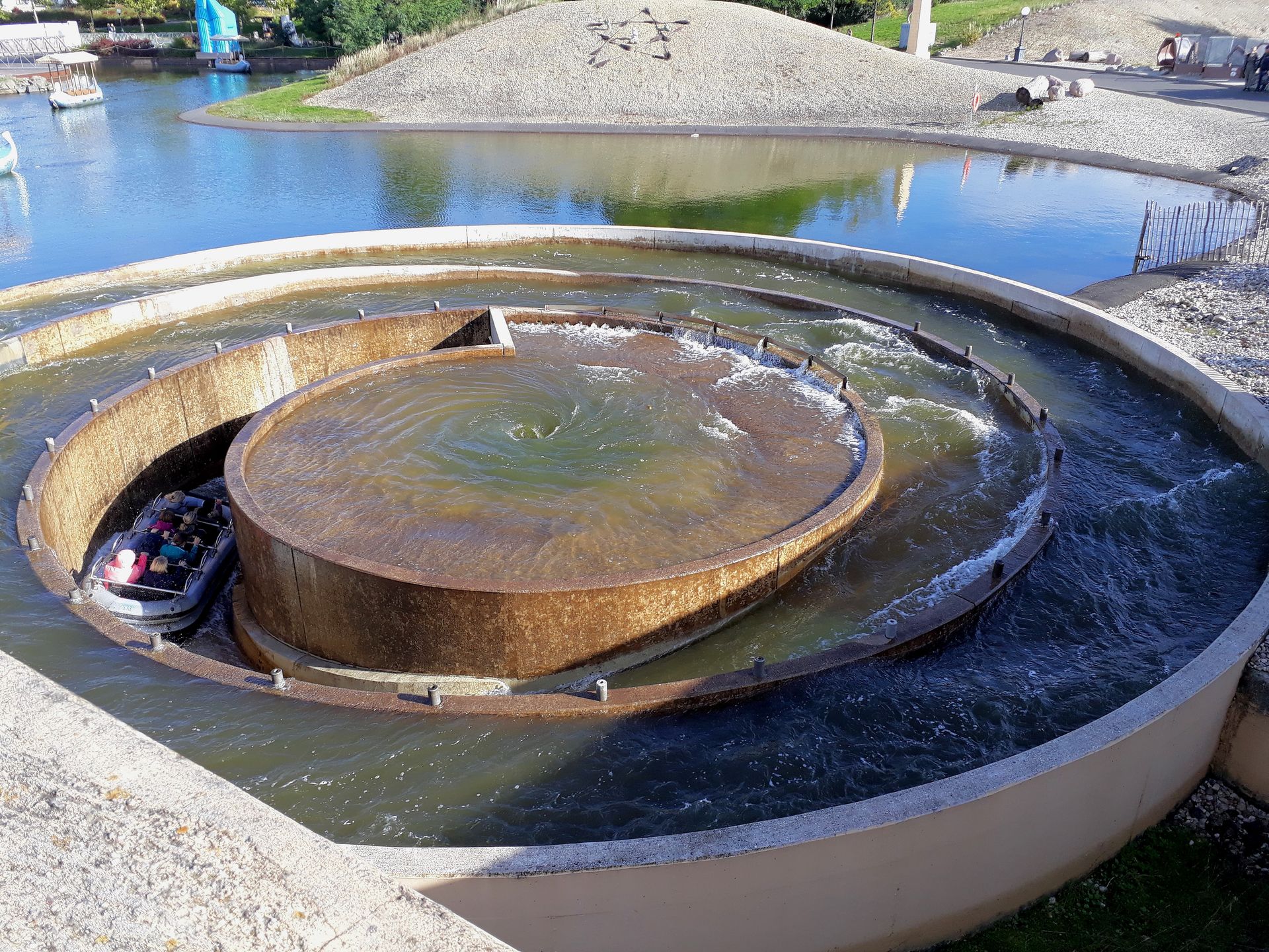 Den Strudel der ägyptischen Wildwasserbahn als Theming-Element (Strudel der Charybdis) der griechischen Bootsfahrt verkaufen? Genial! Wenn auch schwer zu sehen.