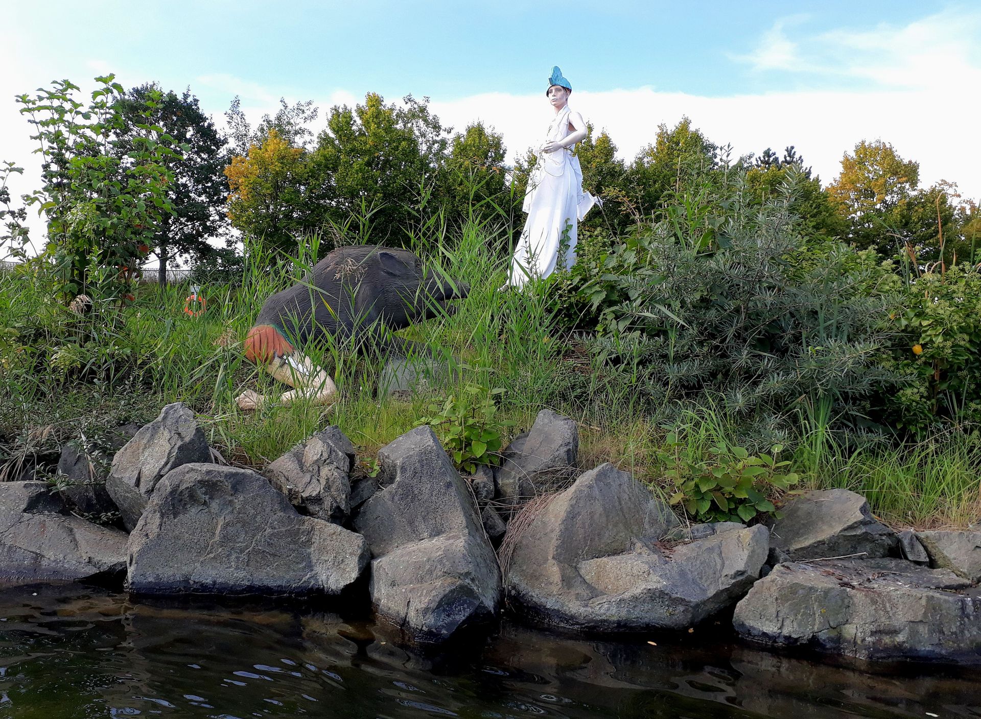 Wieder am Tageslicht schlängeln sich die Schlangen des Herkules am Ufer umeinander.