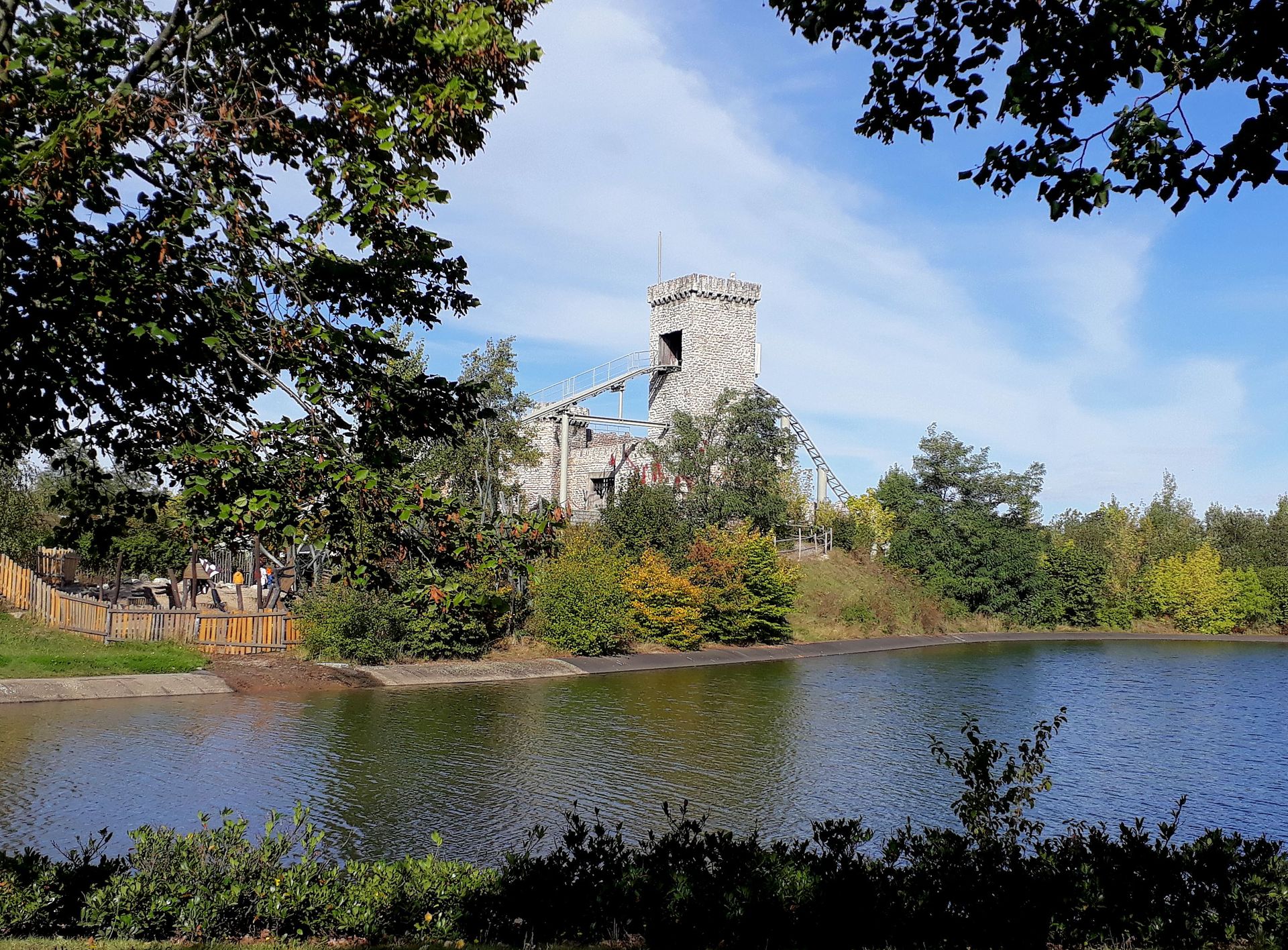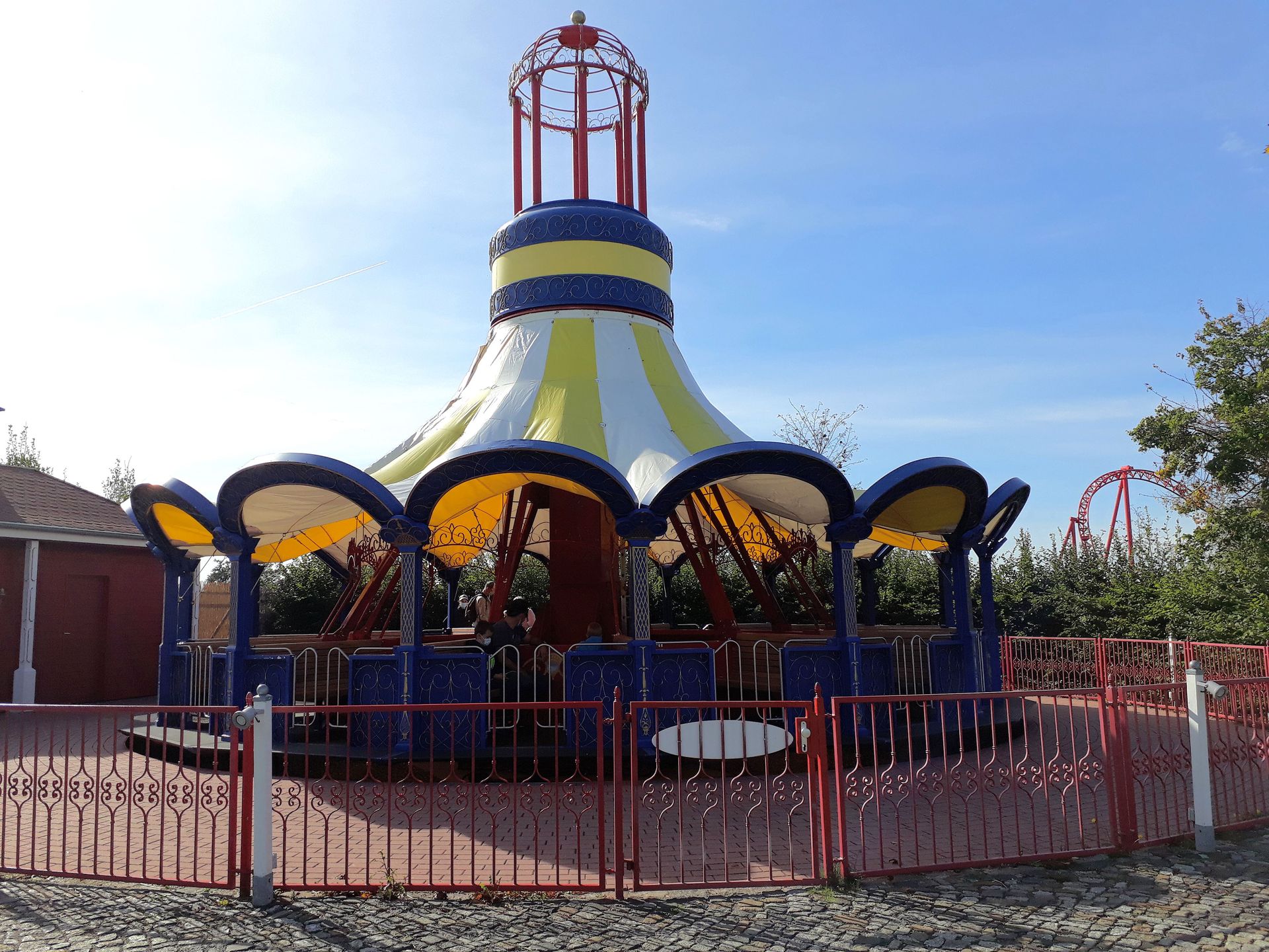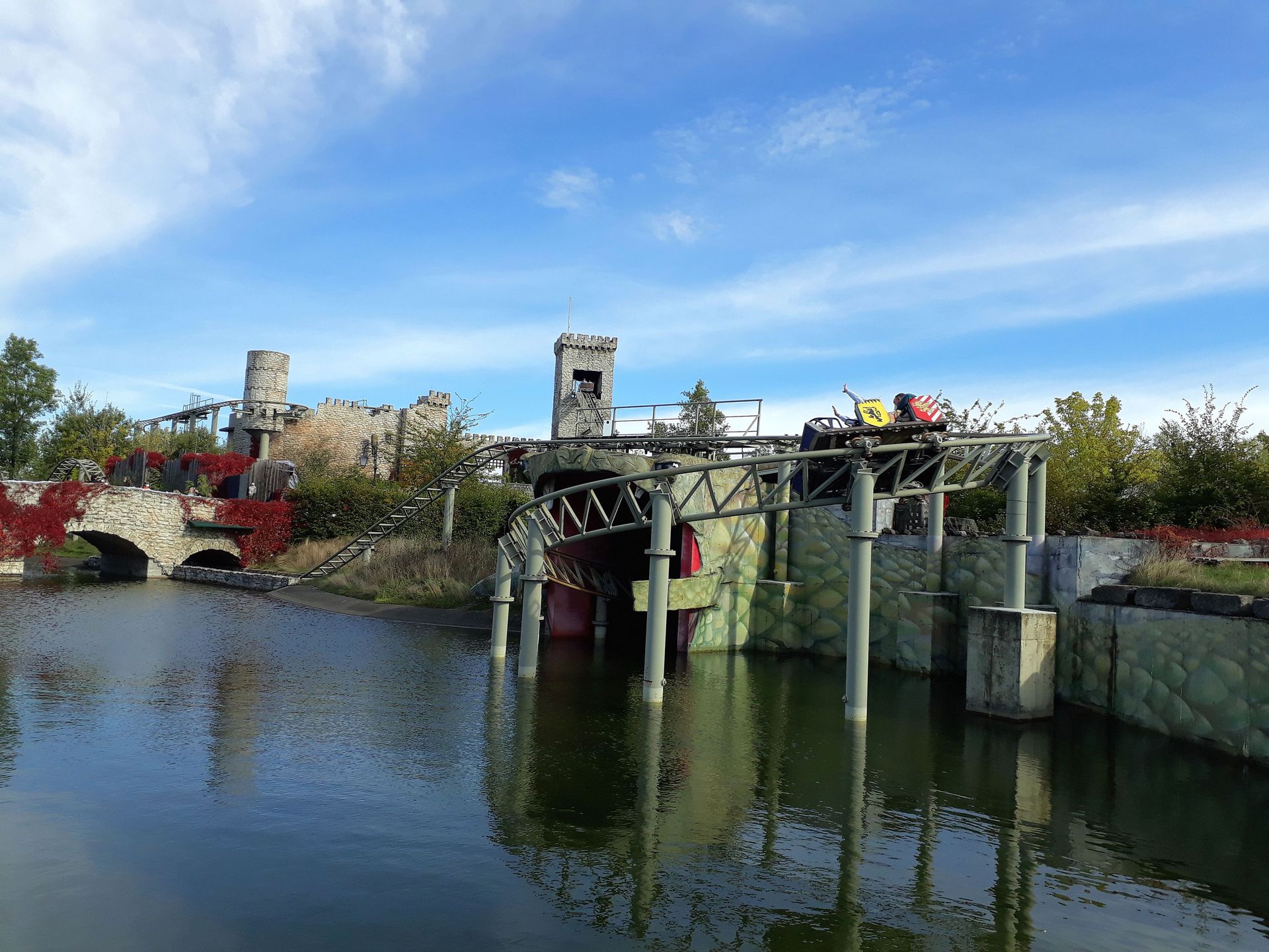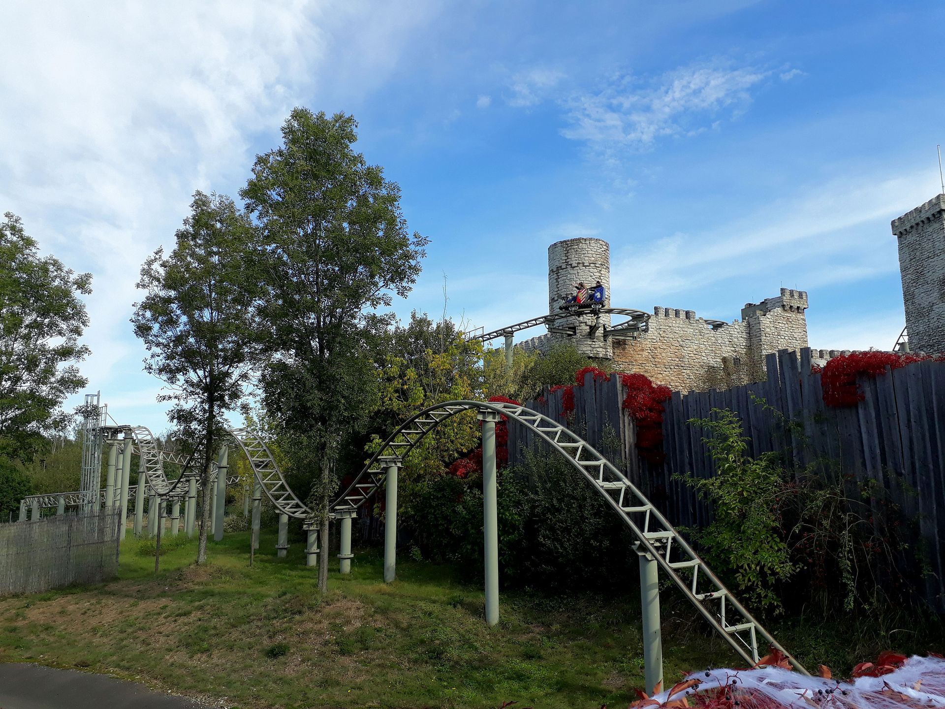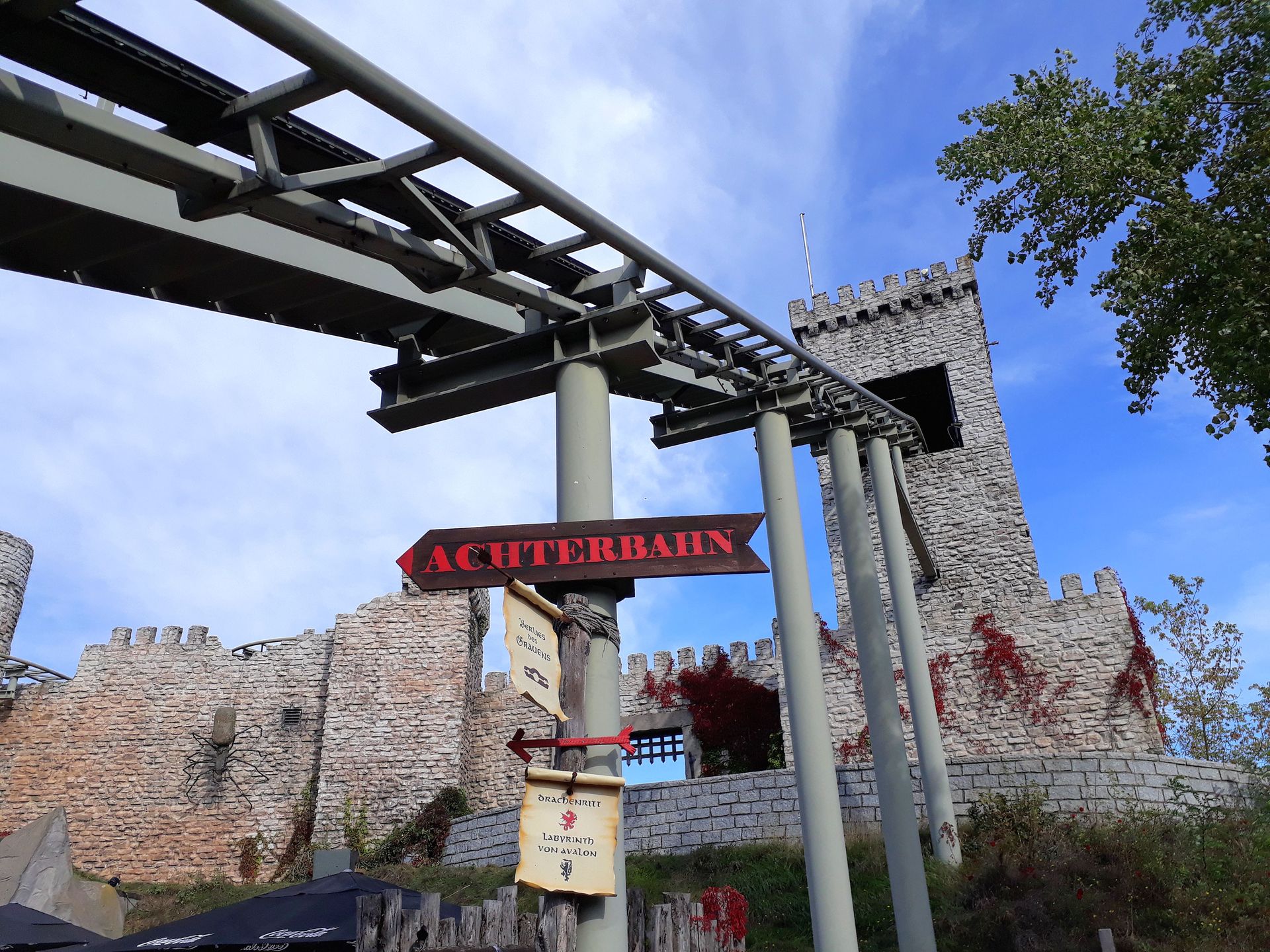 Vekoma gehandelt, das wohl auch ganz gut sein soll. Da das zugehörige Hinweisschild direkt unten den Weg verstellte, sind wir auch nicht rauf zur Burg gegangen. Keine Ahnung, ob man das trotzdem gedurft hätte.