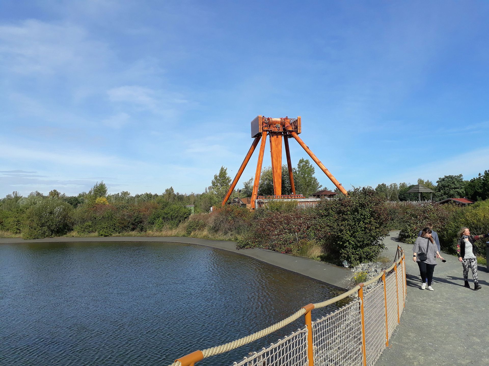 Und weil man es in Belantis wie gesagt nicht so mit dem Planen hatte, war die Prärie der Indianer über viele Jahre hinweg eine Sackgasse. Die Schiffschaukel als nächstgelegene Attraktion ist Luftlinie keine 100 Meter entfernt, aber da liegt halt noch der See dazwischen. Früher musste man daher den GANZEN Weg bis zum Condor zurücklatschen. Erst 2017, also nach 14(!) Jahren wurde der Rundgang um den See endlich mit einer Brücke geschlossen. Ok, zur Schiffschaukel sind es damit trotzdem noch über 400 Meter Fußweg (statt vorher 600m), aber man läuft halt nicht den Großteil davon doppelt.