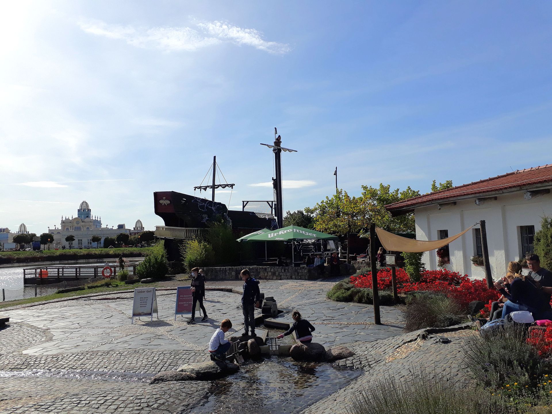 Dahinter verbirgt sich die Bodega samt Spielplatz, Wasserspielplatz und Capt'n Black's Piratentaufe.