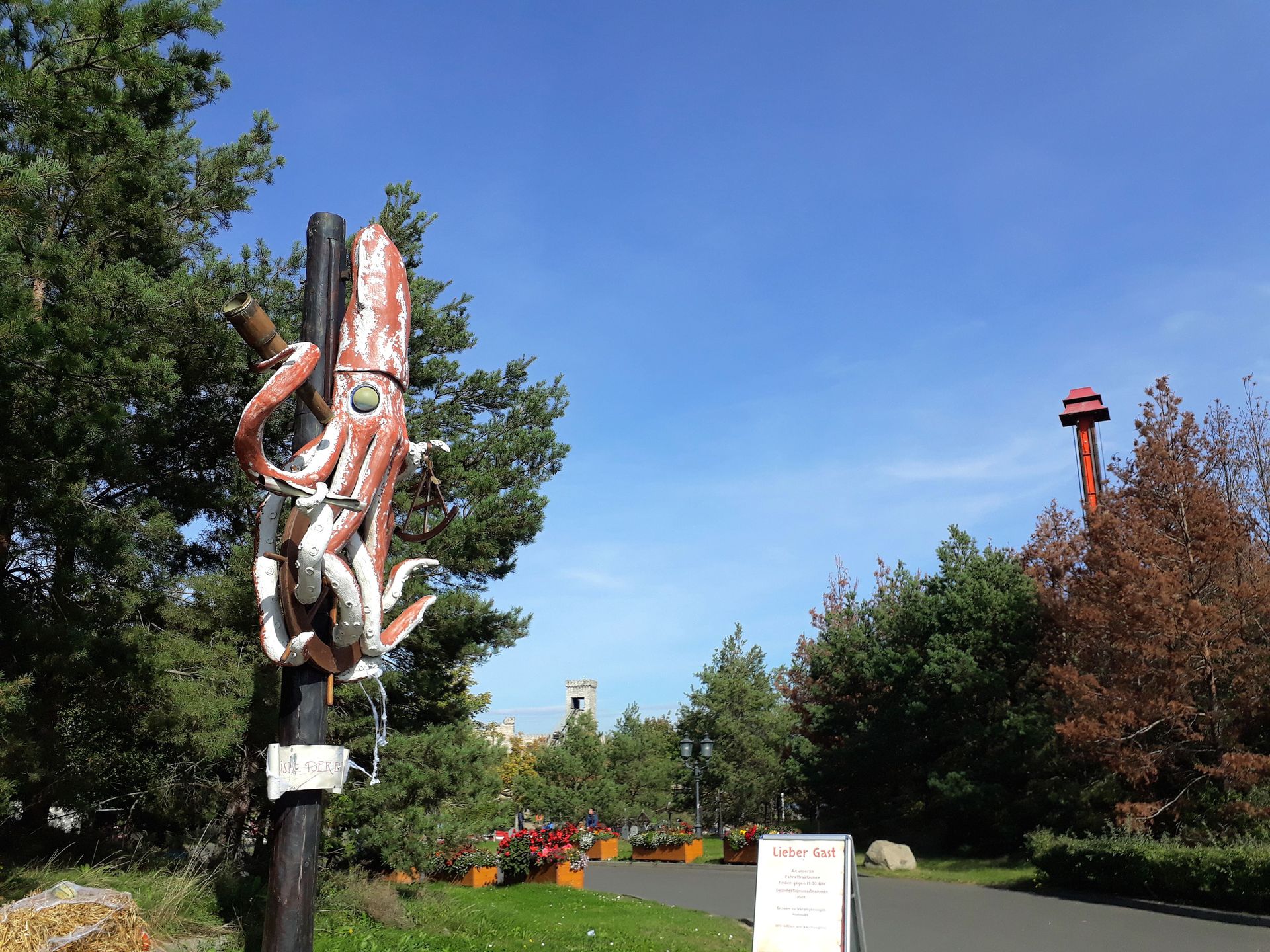 Das könnte aber auch daran liegen, dass er während unseres Besuchs - zumindest soweit ich mich erinnere - nicht einmal in Betrieb war. Auf den Bildern ist auch ein Schild zu erkennen, was diesen Eindruck untermauern dürfte. Da ich das Schiff aber rein dem Spielplatz zugeschrieben hatte, kann ich nicht sagen, was da genau drauf stand. Schade, ich wäre gerne mal wieder einen dieser wackelnden Freifalltürme gefahren.