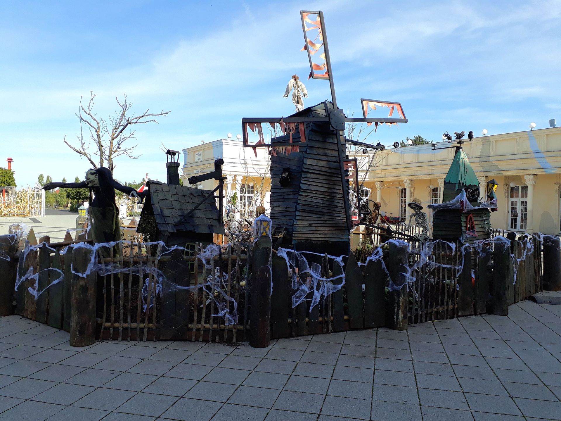 Neben Kürbis-Lampen und Spinnweben-Hecken war linkerhand sogar eine ganzjährige Grusel-Attraktion zu erspähen.