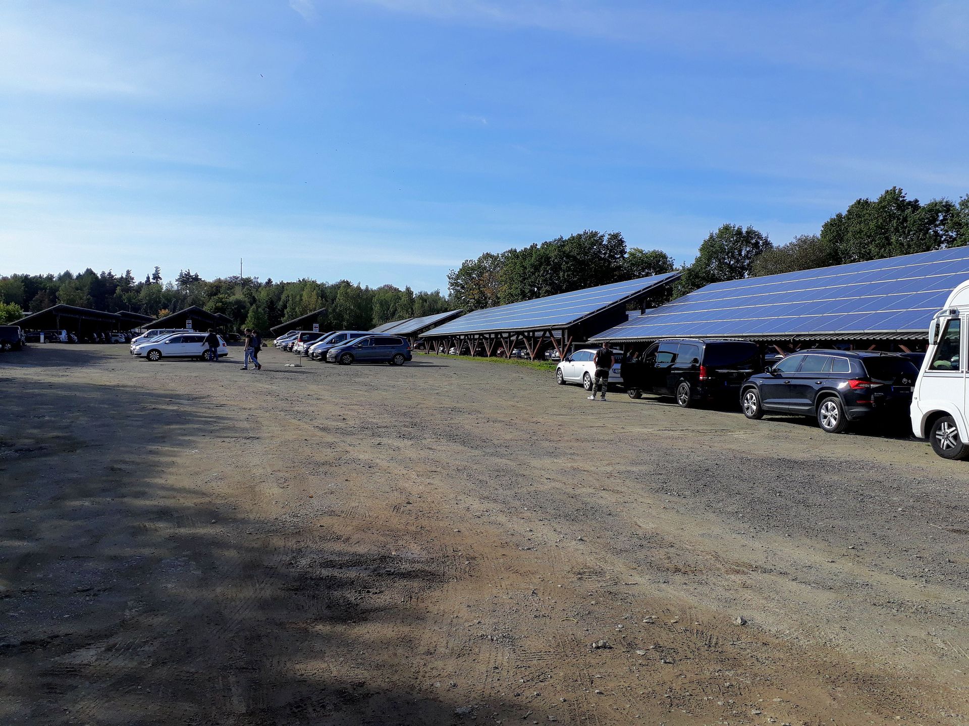 Positiv anzumerken: Der größte Teil der Parkplätze ist mit einer schattenspendenden Solaranlage überdacht.