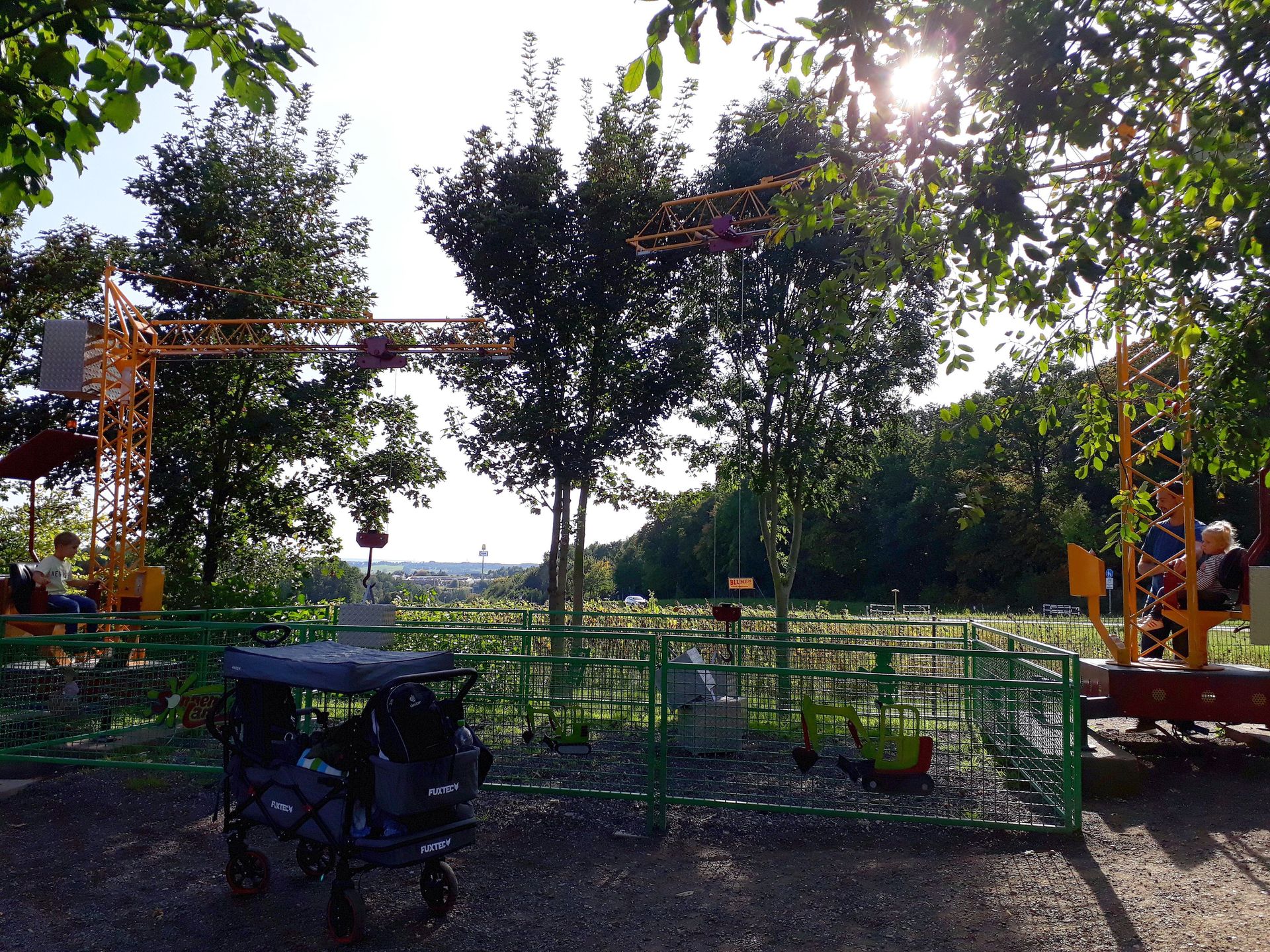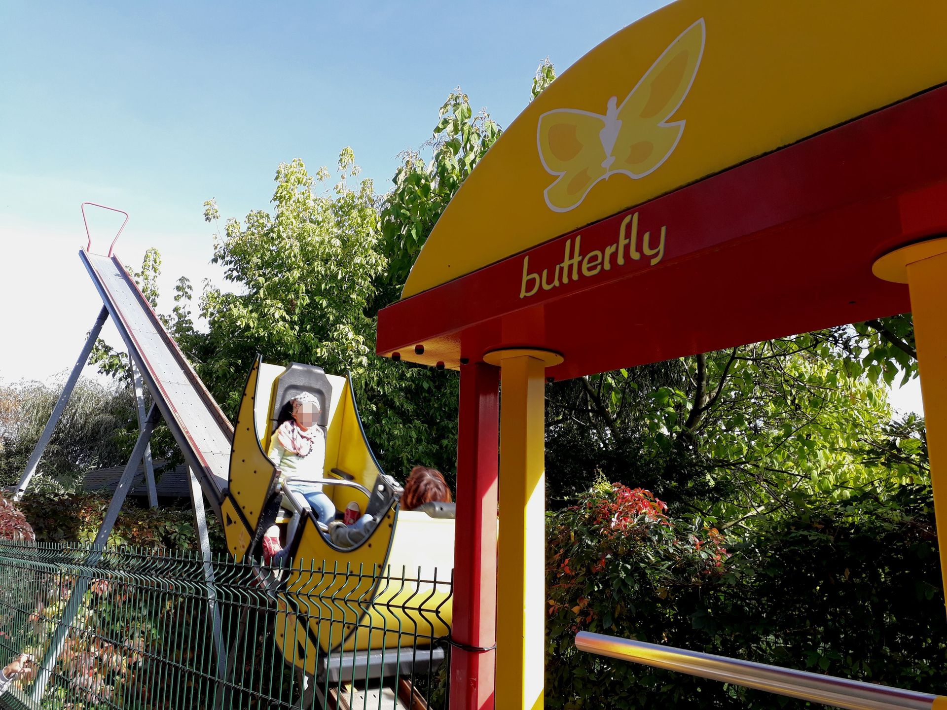 Eine der 12 Gondeln kann übrigens auch mit Rollstuhl genutzt werden. Dazu gibt es einen Spielplatz mit Rollstuhlkarussell und -wippe.