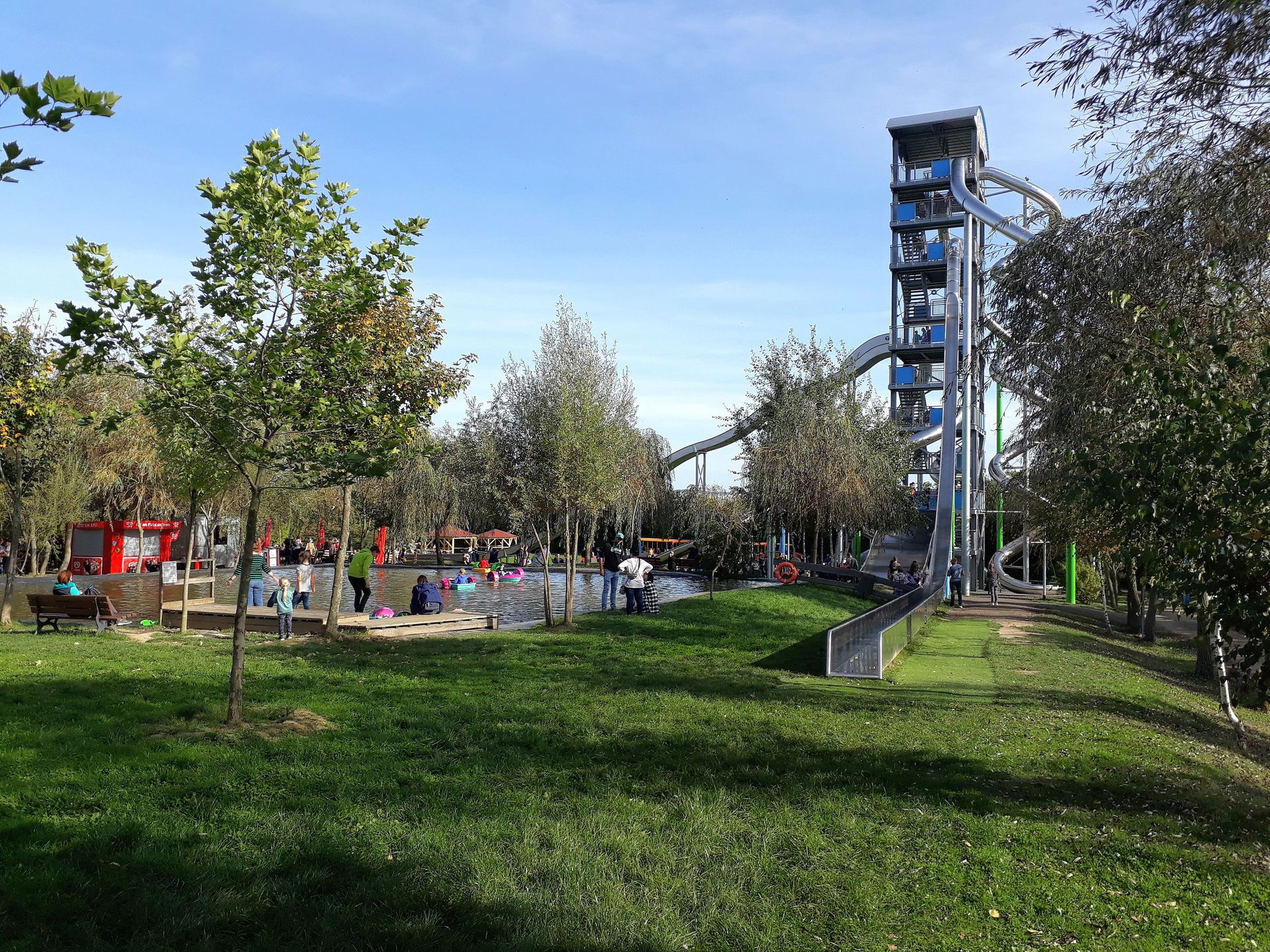 Das Rad steht wirklich weit ab vom Rest des Parks - zum Rutschenturm sind es über 500 Meter, dazwischen liegt fast nur Tierpark.