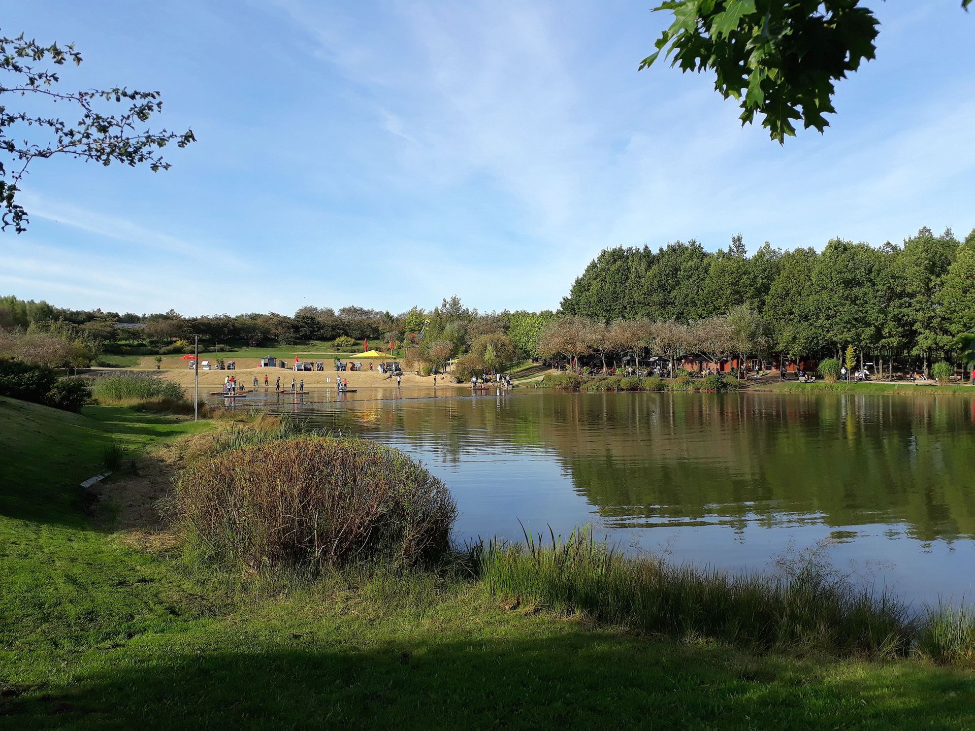 Das Zentrum des Parks bildet auch hier ein großer See mit Sandstrand.