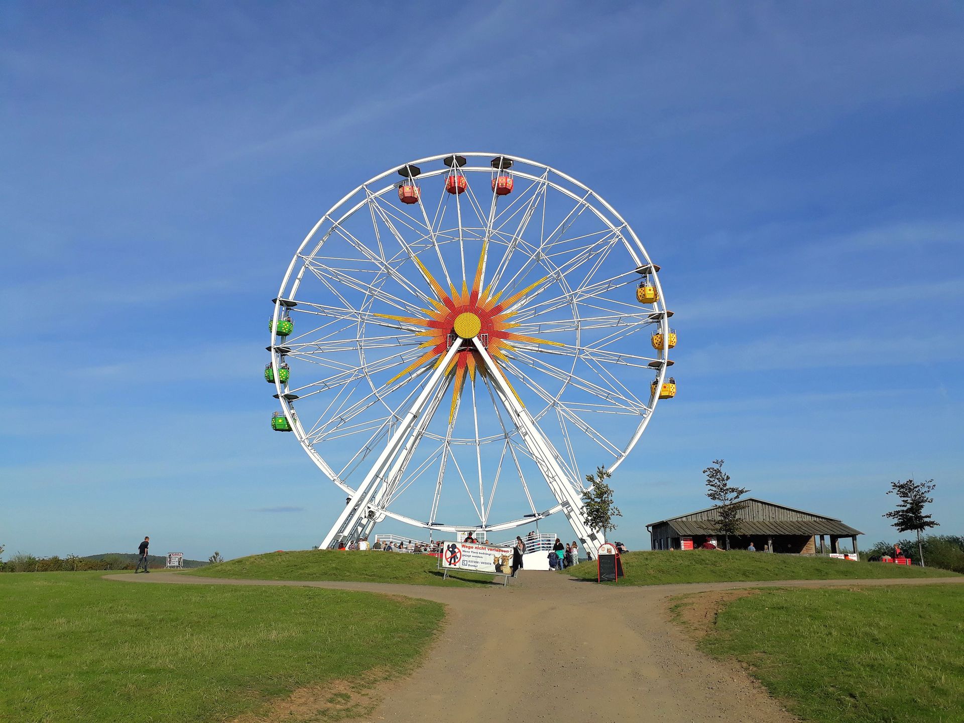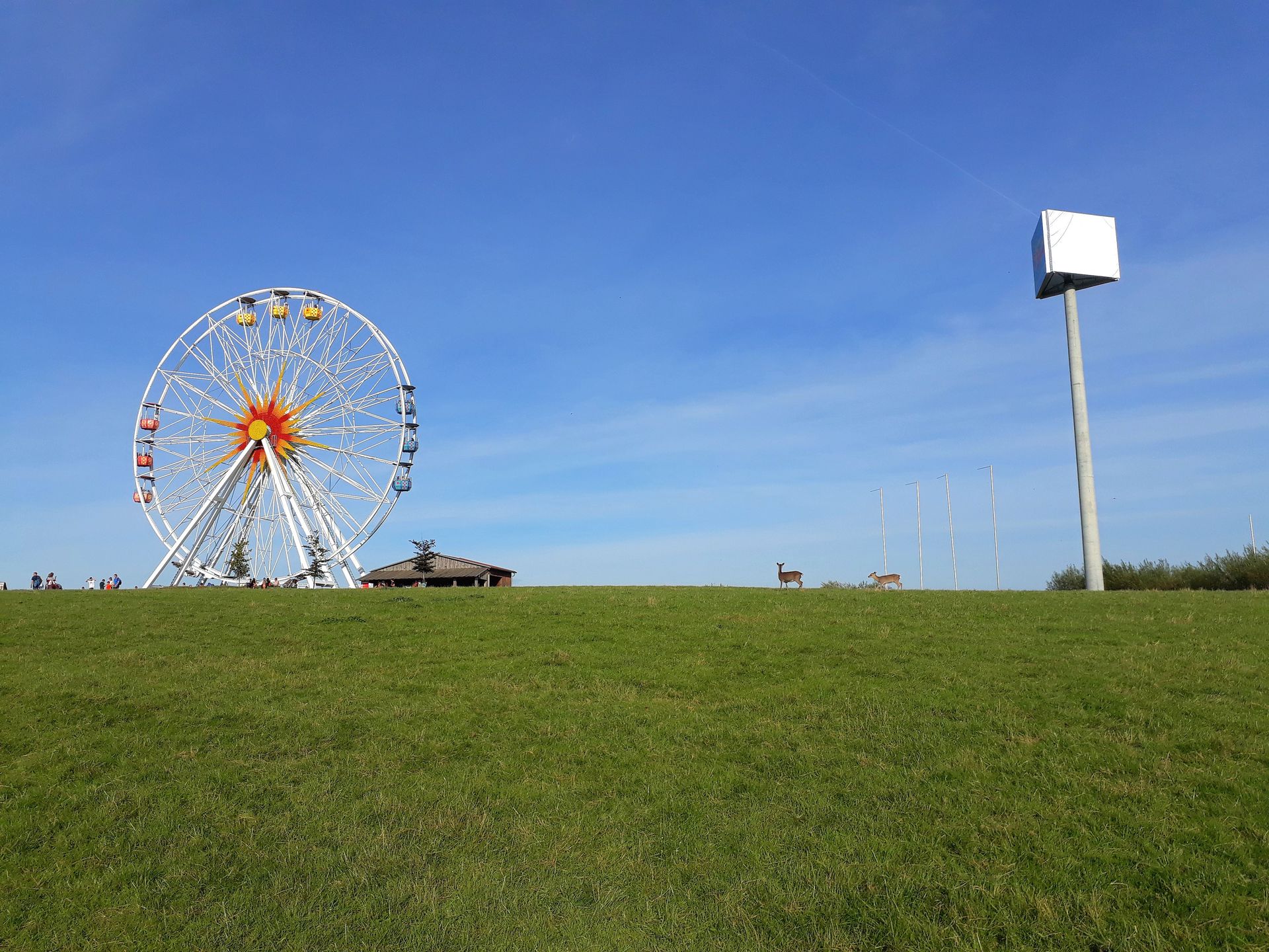 sondern auch noch ein 33 Meter hohes Riesenrad mit kurioser Gondelanordnung, welches dort seit 2010 etwas einsam in der Gegend rumsteht.