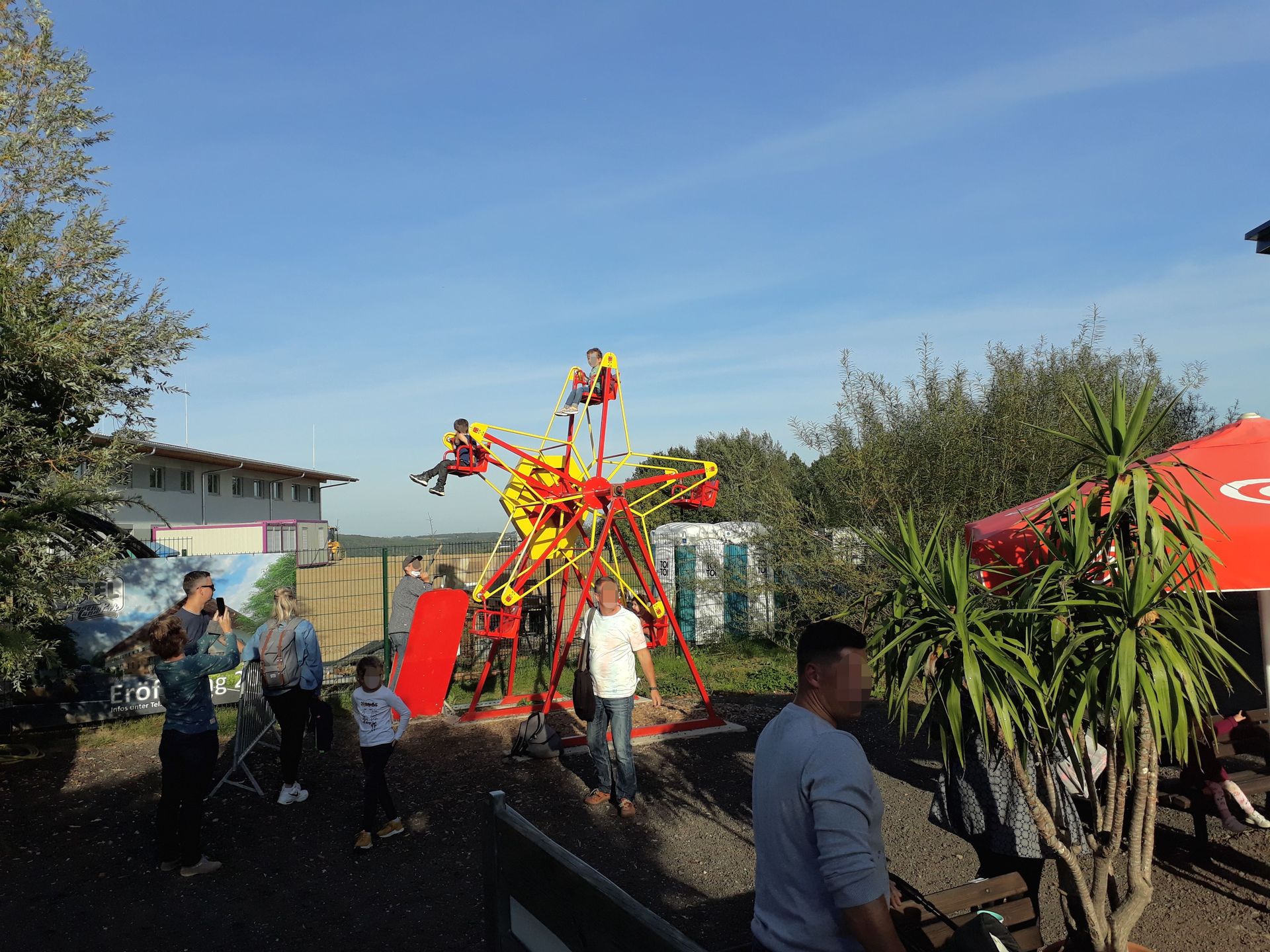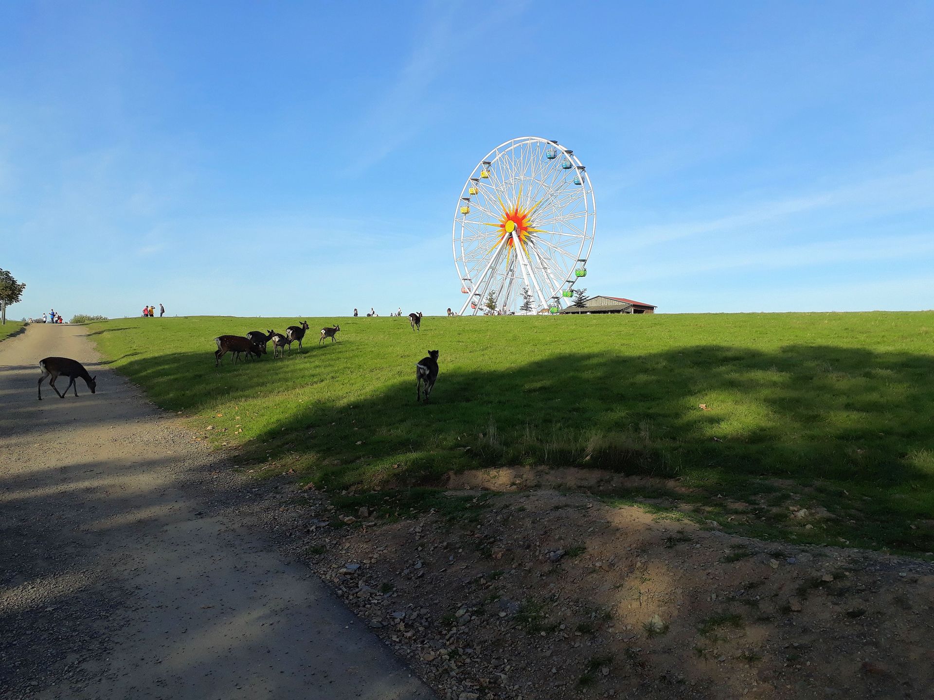 Das Riesenrad steht tatsächlich mitten im Wildfreigehege, die Tiere können also direkt bis an dieses rankommen.