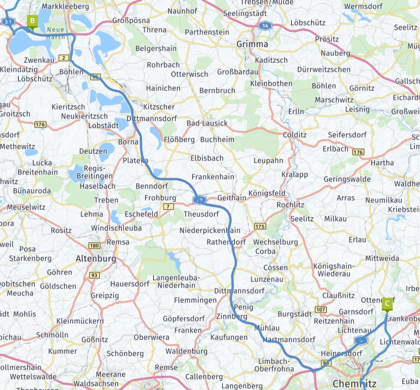 Aus dem Leipziger Süden führte uns die teils noch im Bau befindliche (und damit das Navi kirre machende
