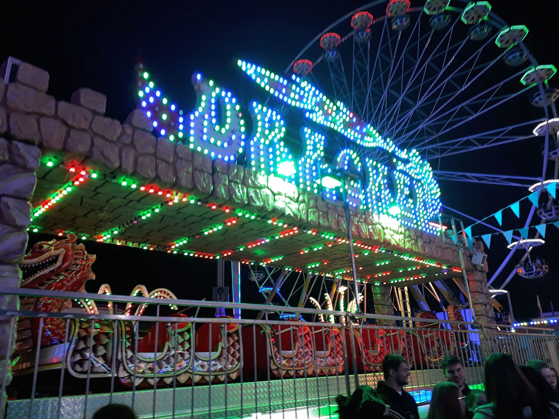 Gegen ein Entgelt von 3€ konnten wir auf dem Rücken des Drachen 7 oder 8 Runden drehen. Mit überraschend lateralkräftiger Helix.